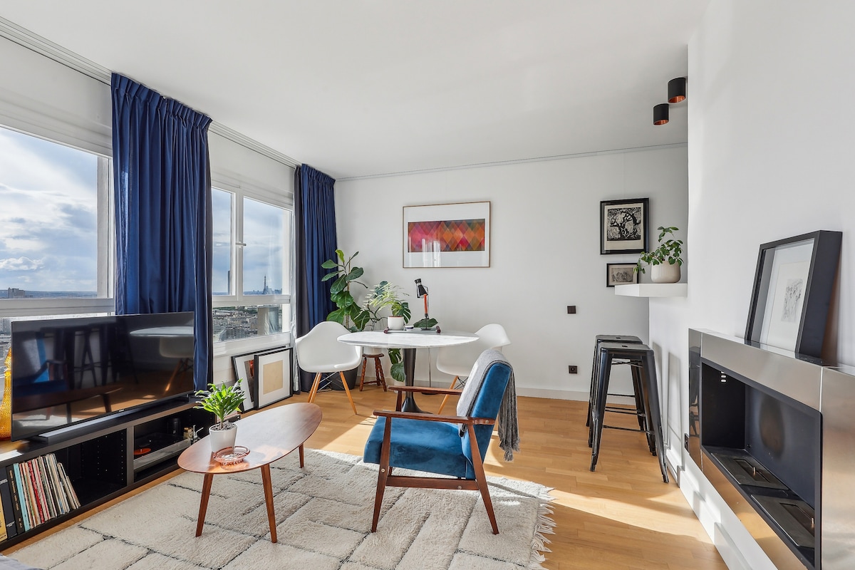 Settle into this elegant studio with balcony and enjoy breathtaking panoramic views over Paris—Eiffel Tower, Montparnasse, La Défense, Invalides, the Panthéon and more. Located on the 14th floor with lift access, the flat features a comfy double bed, equipped kitchen, lounge area, bathroom, and private balcony. Just steps from Place d’Italie metro, it's the perfect base to explore and unwind in the City of Light.