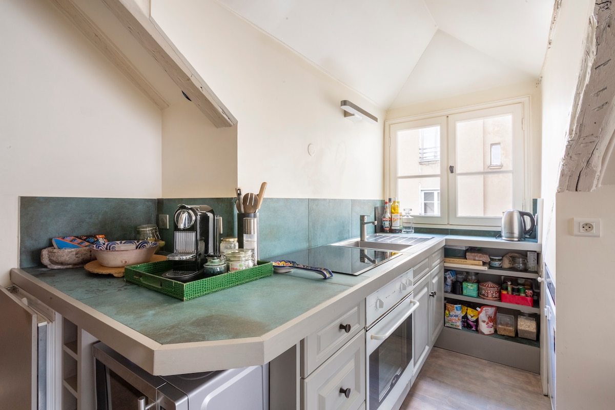 In the trendiest neighborhood of the city, elegant & cosy apartment with artistic vibe, close to the magnificent Place des Vosges. 560sqf, under the roofs, charming and quiet, clean and tastefully decorated, the flat has a small terrace with trees and plants. The area couldn’t be safer, easy connection to everything. 2min from Picasso Museum, 5 from the waterside, 3 from Opera & many other interresting, hip, fashionable and iconic places. The wonderful Paris at your doorstep! Welcome!