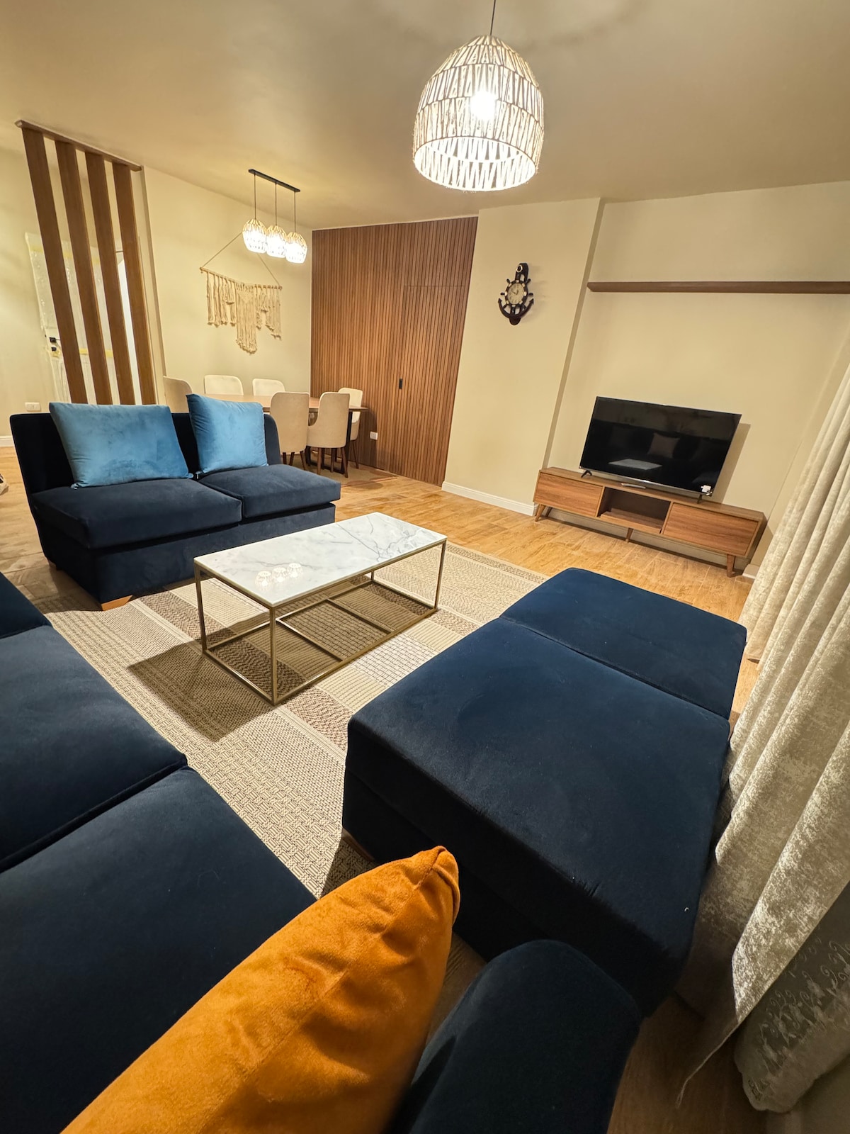 Welcome to our spacious 3-bedroom, 2-bathroom apartment! Our apartment is fully air-conditioned and With a 55" flat-screen TV and free internet. The kitchen is fully equipped with everything you need , including a refrigerator, stove, oven, and microwave. The apartment is also fully furnished with modern new furniture. Our apartment is perfect for families. The master bedroom features a comfortable king-size bed. The second bedroom has a queen-size bed, while the third bedroom has two twin beds.