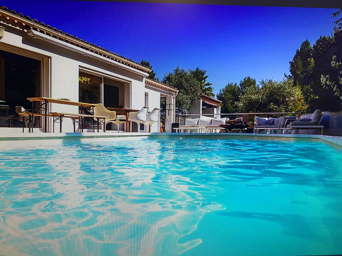 house in the heart of the Parc du Château de la Buzine, in a very peaceful subdivision. the house is 135m2, with 1 master suite and 3 additional bedrooms. for your comfort you will find a large living room with an arcade kiosk. a fully-equipped open kitchen. The 600m2 garden is organized with a children's area swing, trampoline, cabin, a secure pool area not overlooked, and 2 terraces one to the south and one to the north for summer, with a charcoal barbecue at your disposal.