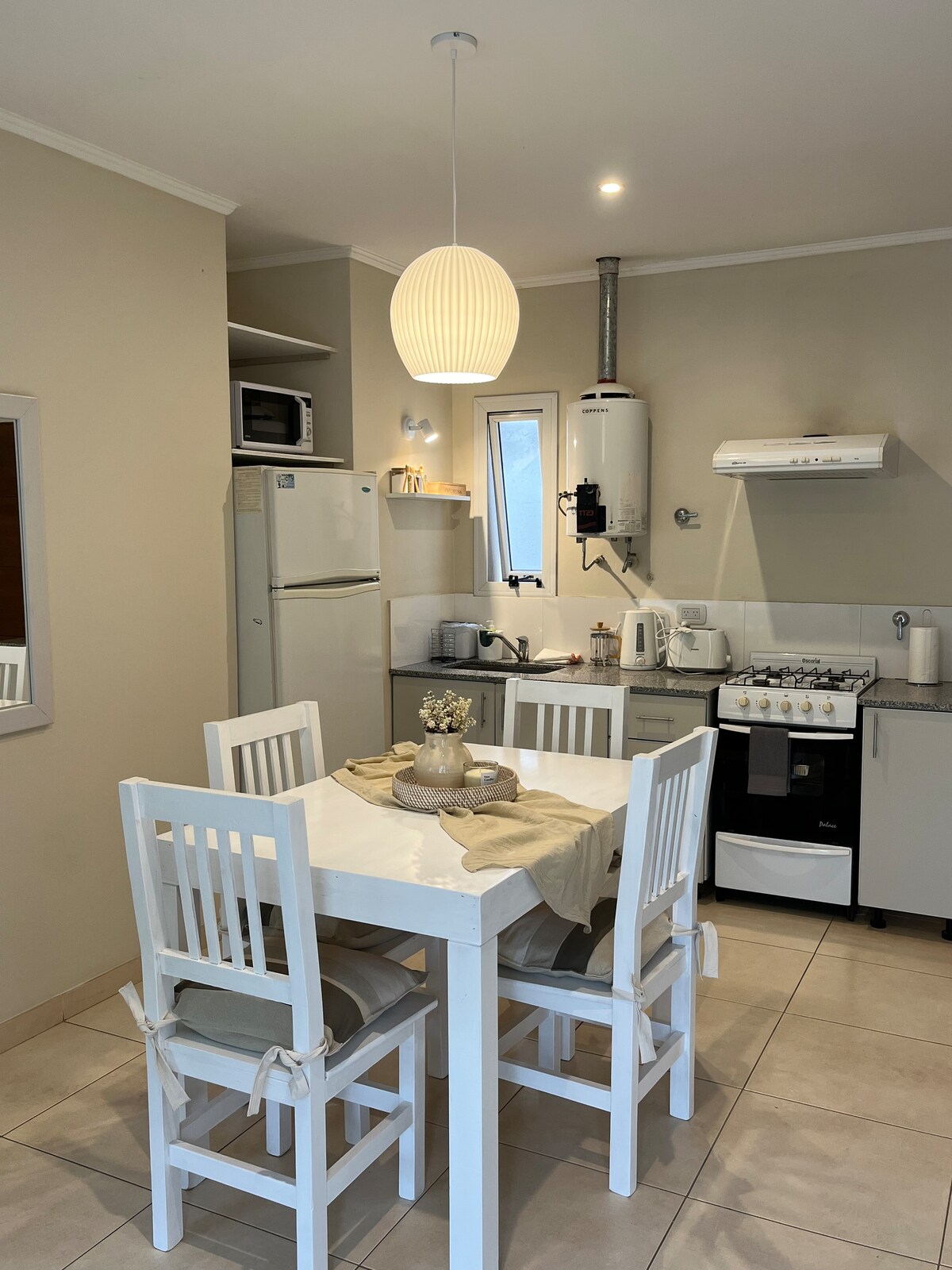 🏠Alquiler temporario🏠 Capacidad máxima: 4 personas • 1 habitación con cama queen size (1,60x2,00) • Living con sillón cama para dos personas • Cocina totalmente equipada • Lavarropas • Microondas • Vajilla completa • Heladera con freezer • Baño equipado • Secador de pelo • Plancha • Tender • Aire acondicionado • Ventilador de pie • Televisor 43” • Patio de luz con sillas y mesa • Incluye ropa blanca (sabanas y toallas) *Incluye desayuno de bienvenida*🧉