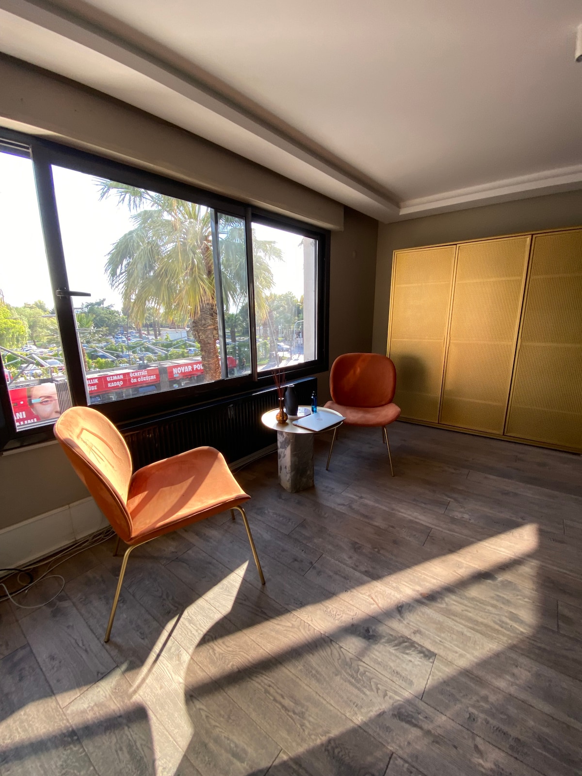 Enjoy city life in our modern apartment, just a 3-minute walk from the Karşıyaka waterfront. ☀️ Sip your morning coffee on the spacious terrace and watch the sunset in the evening. 🚃 The tram, train, and ferry are all within walking distance, and there’s a direct train from the airport. 🏡 With 2 bedrooms, a fully equipped kitchen, fast Wi-Fi, and a cozy living area, you’ll feel right at home. ❗ Please note: The building has no elevator, but a few steps lead to a modern flat with a charming te