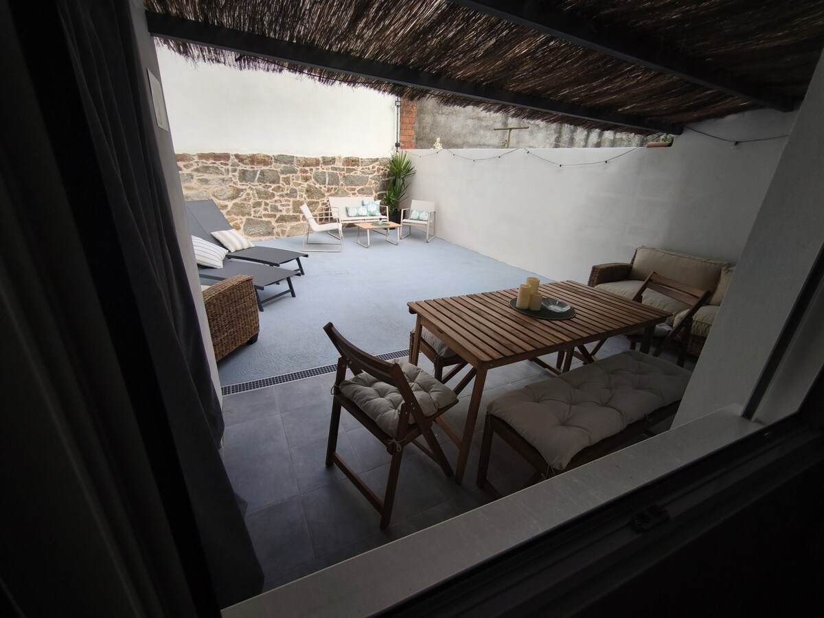 Enjoy a stylish experience at this centrally-located place. Typical good quality stone building. 2 bedrooms (1.50 + 1.35) + sofa bed 1.40 latex and 2 bathrooms. Terraces with ocean views. Enjoying breakfast, lunch, or dinner on these terraces is priceless. You can see the sea from the beds and the dining room table. All in an area with all amenities at street level. Ideal walks around the coast to the lighthouse. And all done with love. Microwave, iron, hairdryer, coffee maker, washing machine