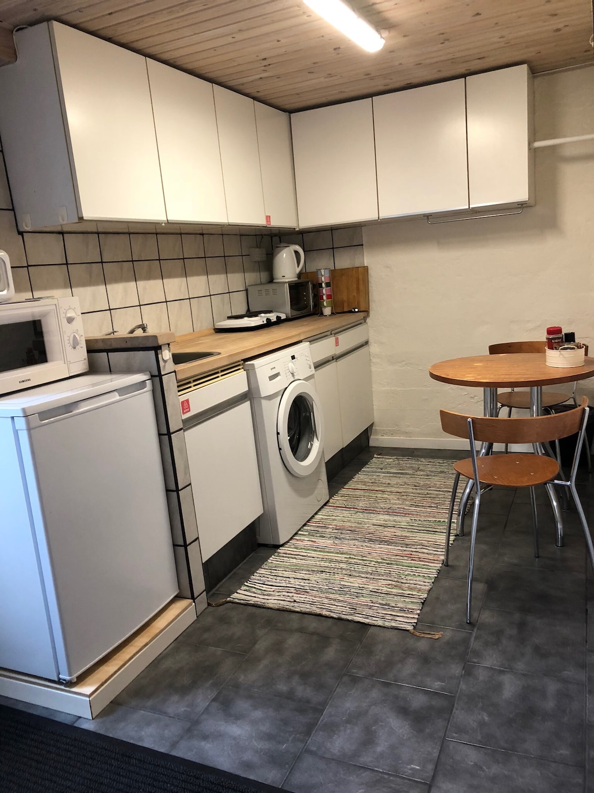 Entrance via private terrace, access to: Bedroom with double bed, living room with wood-burning stove, and extra sleeping space. Nice bright kitchen. Toilet with shower, plus access to laundry room. Free internet and parking. The area is very scenic, with the fjord, Fjordparken, and Lindholm Høje as neighbors. If you walk or cycle across the fjord along the Culture Bridge, you will quickly reach the café environment of Vestre Bådehavn and Vestbyen. There are buses, trains and planes and groceries within walking and cycling distance. Aalborg city 2 km No smoking and no animals.