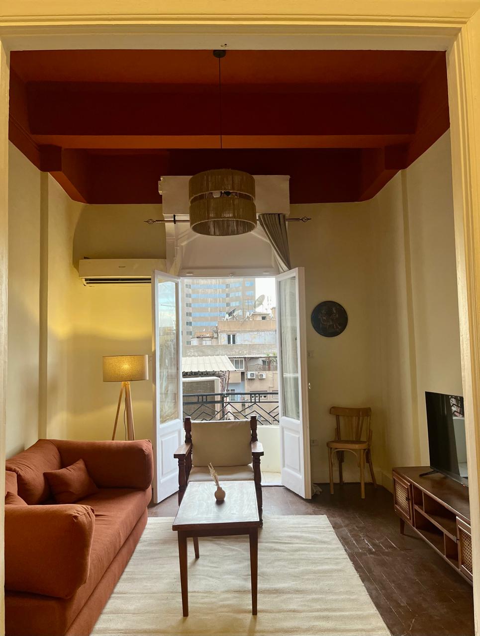 Historical,Nostalgic & Brilliant appartement located in the heart of down town of cairo . A large,comfortable living room with a 48 Inch smart TV,Wifi,Coffee corner and a sofa bed that can be opened for one extra person ,enjoying a very sunny view ,Fully loaded kitchen & A cozy bathroom, A well Air-conditioned bedroom features a comfortable queen size bed in addition to a lovely dining table,The unit is completely a brand new & 3 Mints to the Egyptian Museum,Tahrir square & River Nile.