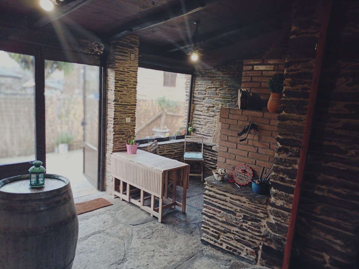 We have eight seats, three bedrooms, a living room with a fireplace, a kitchen and three bathrooms, as well as a beautiful patio, porch and 2000 m of enclosed and fenced land for pets, a barbecue and a beautiful swimming pool. Our cozy house is 15 km from Santiago in the middle of the Camino de la Plata, 300 meters from the last hostel. We are located on Pico Sacro (sacred peak) from where you can see the entire region. Ideal for enjoying nature, tranquility, and a perfect location for excursions.