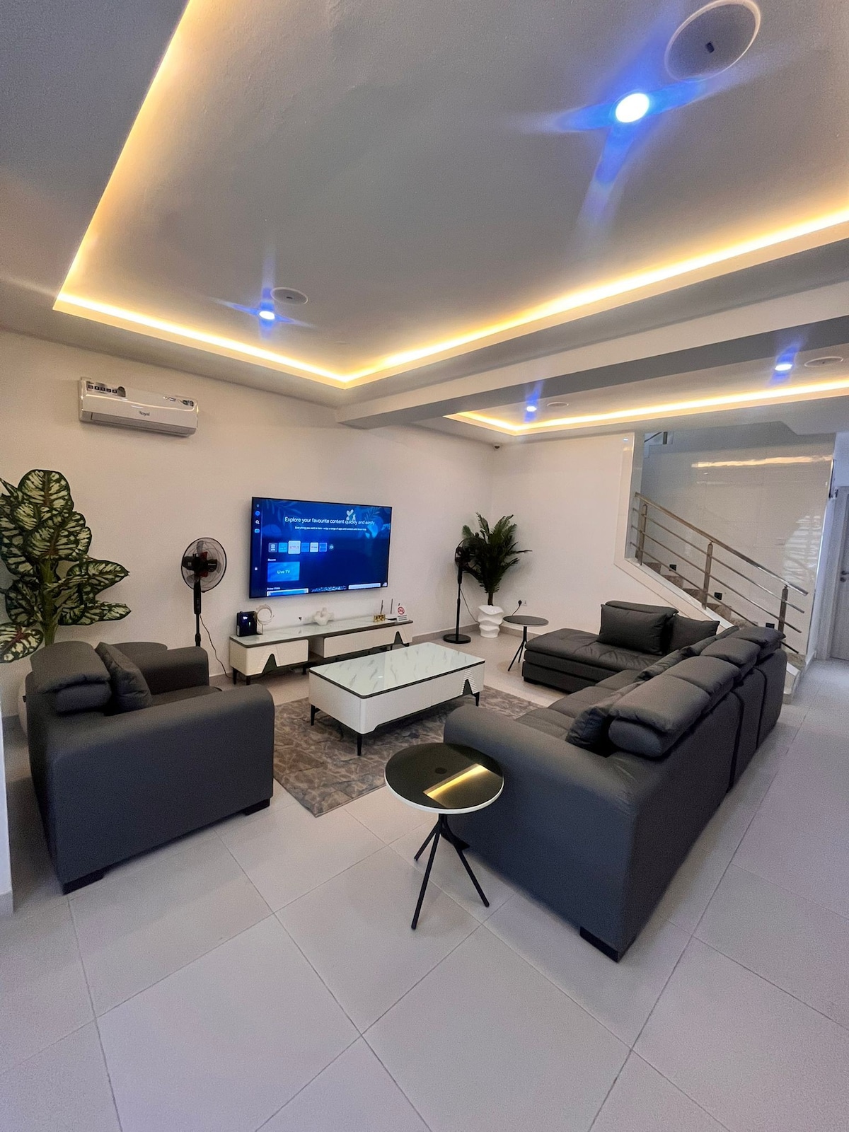 Experience total luxury, privacy and exceptional comfort in this Cozy 3bedroom apartment in Abuja. Nestled in a serene residential area. Designed for families, groups who value their own space. This home features three spacious bedrooms with our plushed double sized beds, each with its own private ensuite bathroom.... Enjoy 24/7 power with high speed Wi-FI and the luxury of having the entire property to yourself. With easy access to the heart of Abuja