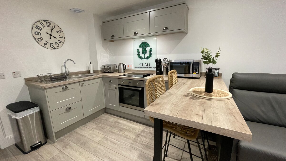 The Forge, our delightsome ground-floor newly renovated apartment is nestled in a peaceful communal courtyard in the centre of the stunning town of Wick. Ideal for a couples or family and friends looking for a break with a mix of rural and coastal activities. The Forge is situated right next to Wick marina and only a few minutes walk away from the town centre hosting an array of local bars and restaurants. There is so much to experience with your guests from this charming base.