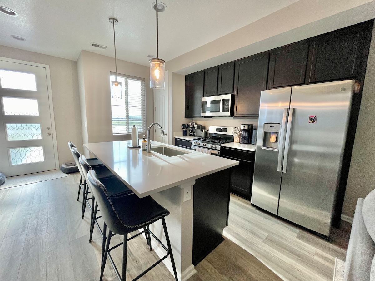 Bring the whole family to this newer home with lots of room for fun. Located perfectly between Denver International Airport & Downtown Denver, this 3 bedroom, 2.5 bath home has everything you need to make your stay in Denver perfect & comfortable, including a main floor primary bedroom. The separate office has double monitors & a dock for easy lap top plug in. Looking to get a quick workout in? Enjoy the Peloton bike in the home or take a quick walk to the fitness center just two blocks away.