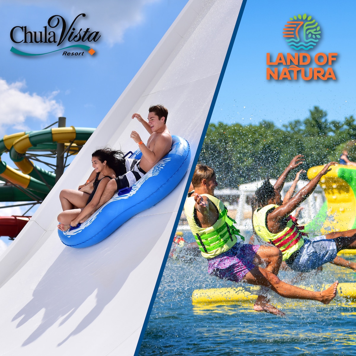 TWO WATERPARKS! Chula Vista + Land of Natura. This Villa Loft, located at Chula Vista Resort, is ideal for larger families or group get-togethers. Waterpark passes to Chula Vista Resort parks are always included along with 4 one day passes to Land of Natura! The villa features a convenient kitchenette, two queen beds on the lower level, and a queen/twin bunk bed in the loft. With two TVs—one on each level—there's plenty of space to relax after a fun-filled day at the waterparks with your family!