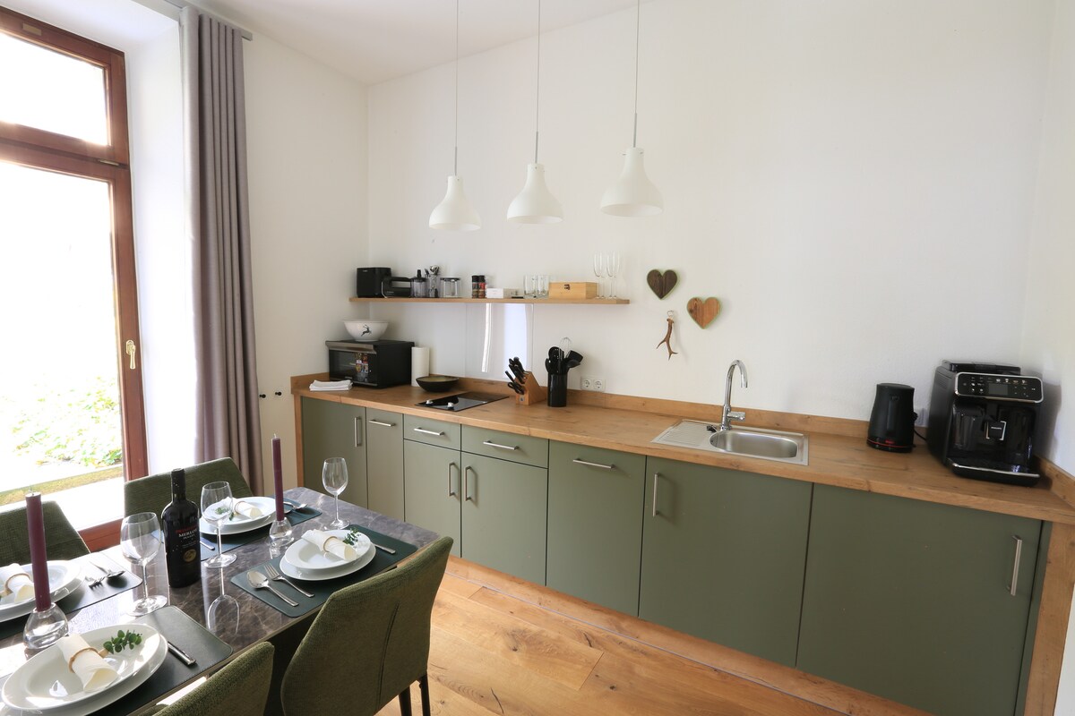 Fantastic holiday flat, ideal for couples, families or city visitors who want to enjoy the flair and advantages of our city centre location. On 84 square metres of living space you will find our top accommodation, only 200 metres from the town hall, on the pedestrian zone, which invites you to visit the sights, bars & restaurants and the old town. The flat was modernised to a high standard at the beginning of 2024 and also offers plenty of space and comfort for longer stays for up to 6 people
