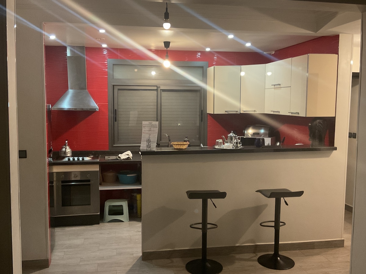 Located in the Talborjt district, close to all amenities: 2.6 km from the beach and the Corniche, 1.8 km from the large EL-HAD souk market Located on the ground floor. Washer, dryer. Air conditioner/heater. 1 double bed, 1 single bed. 2 benches that can be used as single beds. Fully-equipped kitchen, battery... 20 mbps high-speed internet for remote work. Satellite TV, streaming TV channels, movies, series. Quiet residential neighborhood. Free parking
