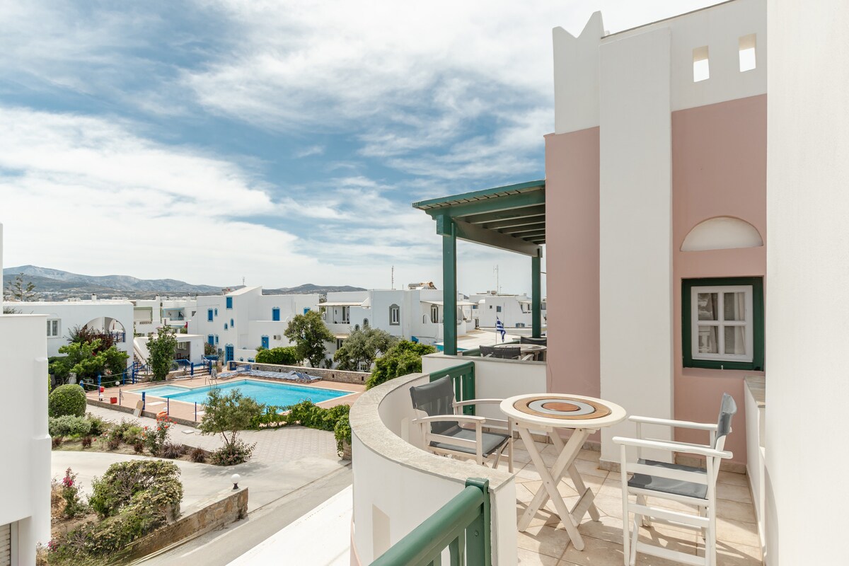 Relax at your balcony and enjoy the stunning sea and pool views. Naxos Contelibro upper floor superior room has a double bed, private bathroom and private balcony. Free Wi-Fi, daily cleaning service, and shared swimming pool. No detail is overlooked at this charming and upscale place to stay.