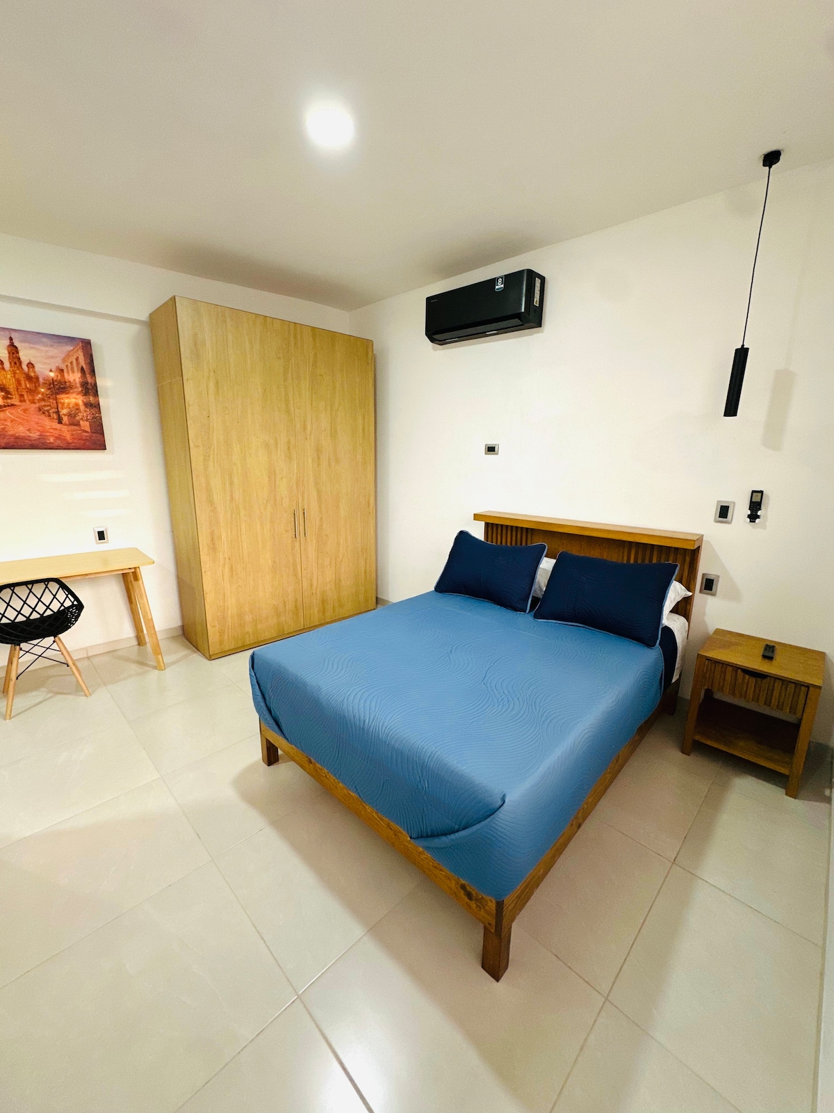 Departamento Nuevo de una habitación con cocina totalmente equipada, baño privado, T.V., internet, aire acondicionado, escritorio y clóset. Además de una excelente ubicación, donde puedes ir caminando a las zonas más turísticas de la Ciudad. A unos cuantos pasos puedes encontrar el Jardín de San Marcos, el corazón de la Feria Nacional de San Marcos, restaurantes, bares, museos, jardines, supermercados y más… Te esperamos en nuestra estancia para que puedas vivir una experiencia inolvidable.