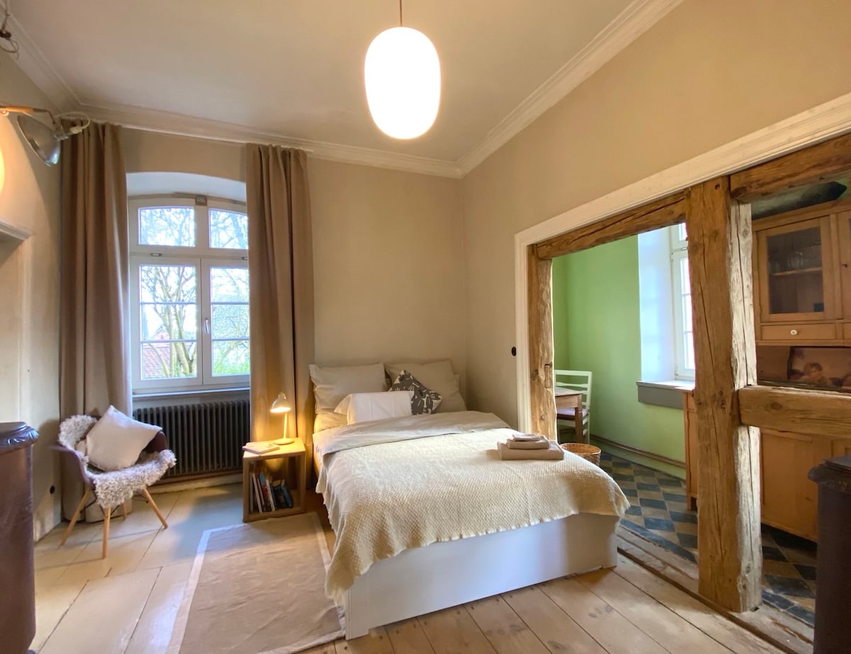 Romantisches Hideaway der Extraklasse Überwölbt von einer historischen Backsteindecke findet sich das Kuschelnest im Gartengeschoss der Villa Meeresstern, einem geschichtsträchtigen, denkmalgeschützten Bau aus dem vorletzten Jahrhundert. Die einzigartigen, erst kürzlich sanierten Räumlichkeiten – bestehend aus großem Wohn-Schlaf-Loft, Küche, Vollbad und separater Garderobe - bieten einen faszinierenden Mix aus Historisch und Contemporary, der Design-Fans begeistern wird.