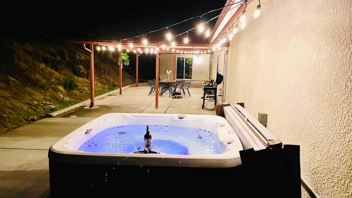 LOCATION!!! Yosemite National Park & Bass Lake close! Stylish Retreat with Gorgeous tree views, indoor jacuzzi bathtub, primary BR with onsuite Bath and slider access to outdoor color changing Hot tub in a Fenced grassy back yard with tree strung market lights, deck, hammock, water feature, firepit and stars! Ample kitchen supplies, High quality bedding, board games, DVD/ movies, fast internet TV's, firewood for fireplace. Location 20 minutes to Yosemite South Gate!! Large driveway.