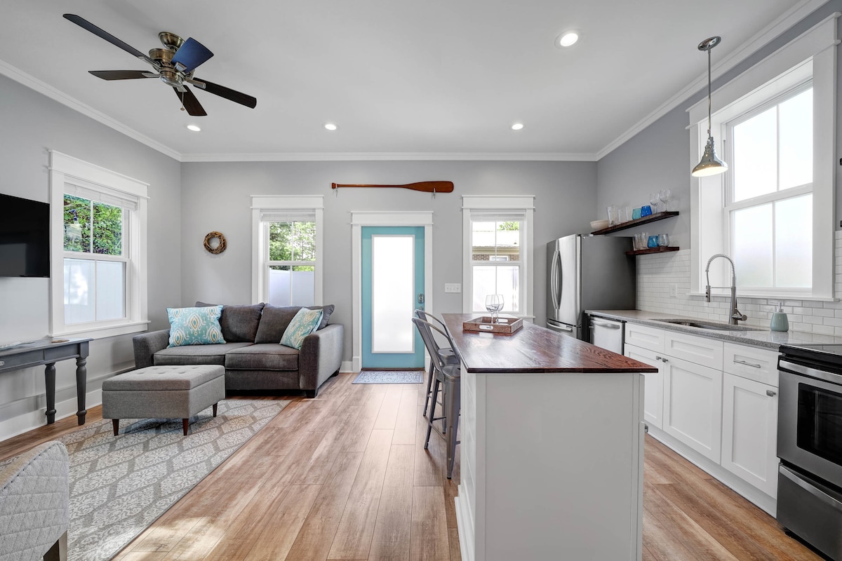 Newly renovated quiet cottage in a prime location—just minutes from Wrightsville Beach, Downtown Wilmington, and UNCW. Walk to breweries, restaurants, and the Arboretum. Includes a queen bed, blackout curtains, full-size fridge, kitchenette, workspace, fast Wi-Fi, and A/C. Ideal for digital nomads, beach lovers, or visiting parents of UNCW students. Spacious living area perfect for yoga, bikes, or boards. Relax, explore, and feel at home near the coast.