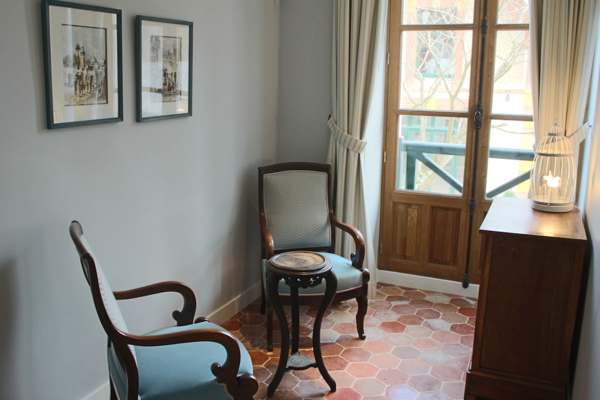Marc and Dorothée welcome you to a bed and breakfast in their large family home, "la Folia". The "La Parisienne" room is located on the 1st floor. 18 m2, it is equipped with a double bed 140*190, and a sink area. A single bed can be added on request. The toilet and shower are outside the bedroom and accessible from the landing. You will have access to a large common room and a kitchenette area. Breakfast is included in the price.