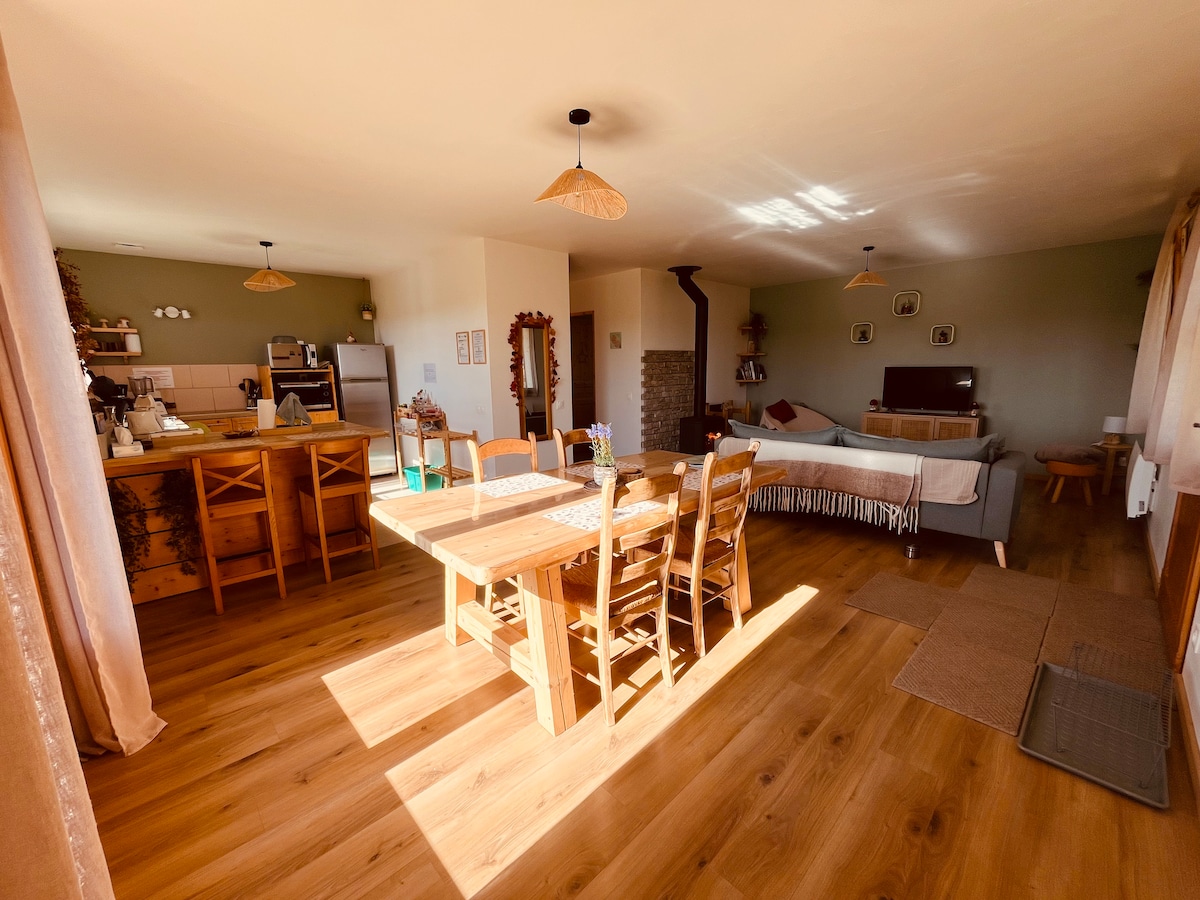 "Lovers' Nest" is the ideal place for couples seeking relaxation and zen. This fully renovated 70 m2 house has been furnished and decorated in natural shades and materials by a decor addict. This cozy cocoon is the perfect place to meet as a couple and have a good time together. The +: jacuzzi, massage room, video projector with home theater Beautiful services, tasteful decor and pretty materials such as polished concrete, linen, organic cotton...