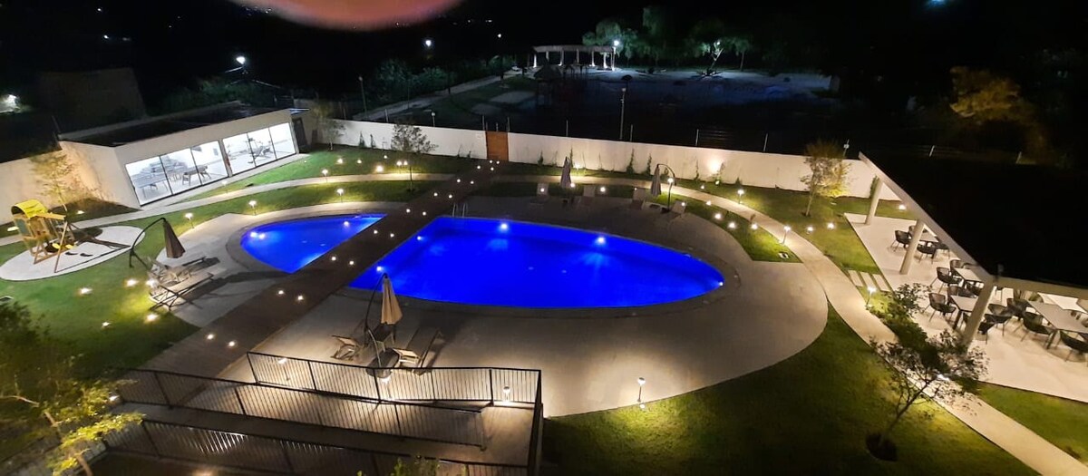 Cozy beautiful house with all the services (TV, wifi, washer, dryer, microwave, dish washer, refrigerator) for the perfect getaway. Located in a gorgeous condominium with great views, full of green areas and very peaceful. 4 minutes away by car from the center of the town, local stores, restaurants and the lake. Your visit will be complemented with days by the pool or the jacuzzi, the best barbecue prepared by you or quiet walks, admiring all the nature found inside the condominium.