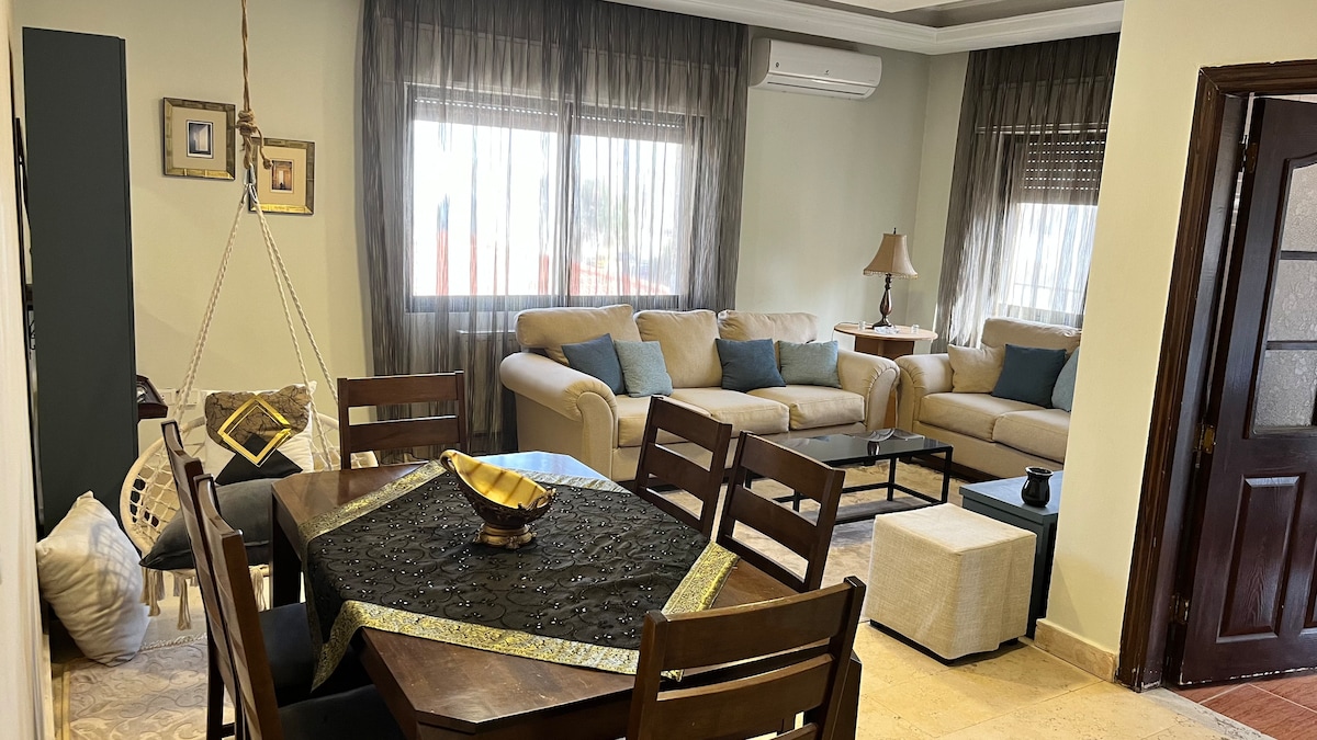 Welcome to our modern apartment in Shmeisani, Amman! Enjoy luxurious bathrooms, a fully-equipped kitchen, free high-speed internet,free Netflix , free car parking and housekeeping for long stays twice each month , pet-friendly, balcony, sleek design, and efficient air conditioning Unwind on the apartment balcony, taking in breathtaking views and fresh air. contemporary design for a comfortable and stylish living space. with 3 fireplaces for winter cozy nights Don't miss this opportunity!