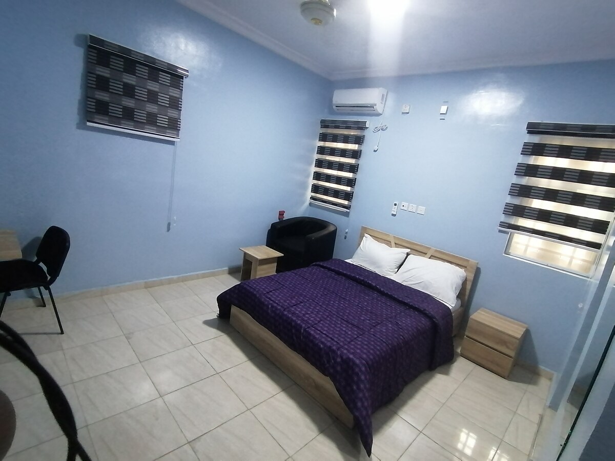 Beautiful & well ventilated self-contain premium serviced apartments are available for short let in a serene and secure environment just 5 minutes drive to the University of Ibadan. Facilities include; 24 Hour Solar Inverter Power Supply, Wardrobe, Air Conditioning, en-suite bathroom furnished kitchen with Microwave Oven, Inverter Refrigerator, Treated Water supply, Free laundry CCTV Permanent 24-hour security guard, Electric fencing system & Spacious car park Wifi is under maintenance