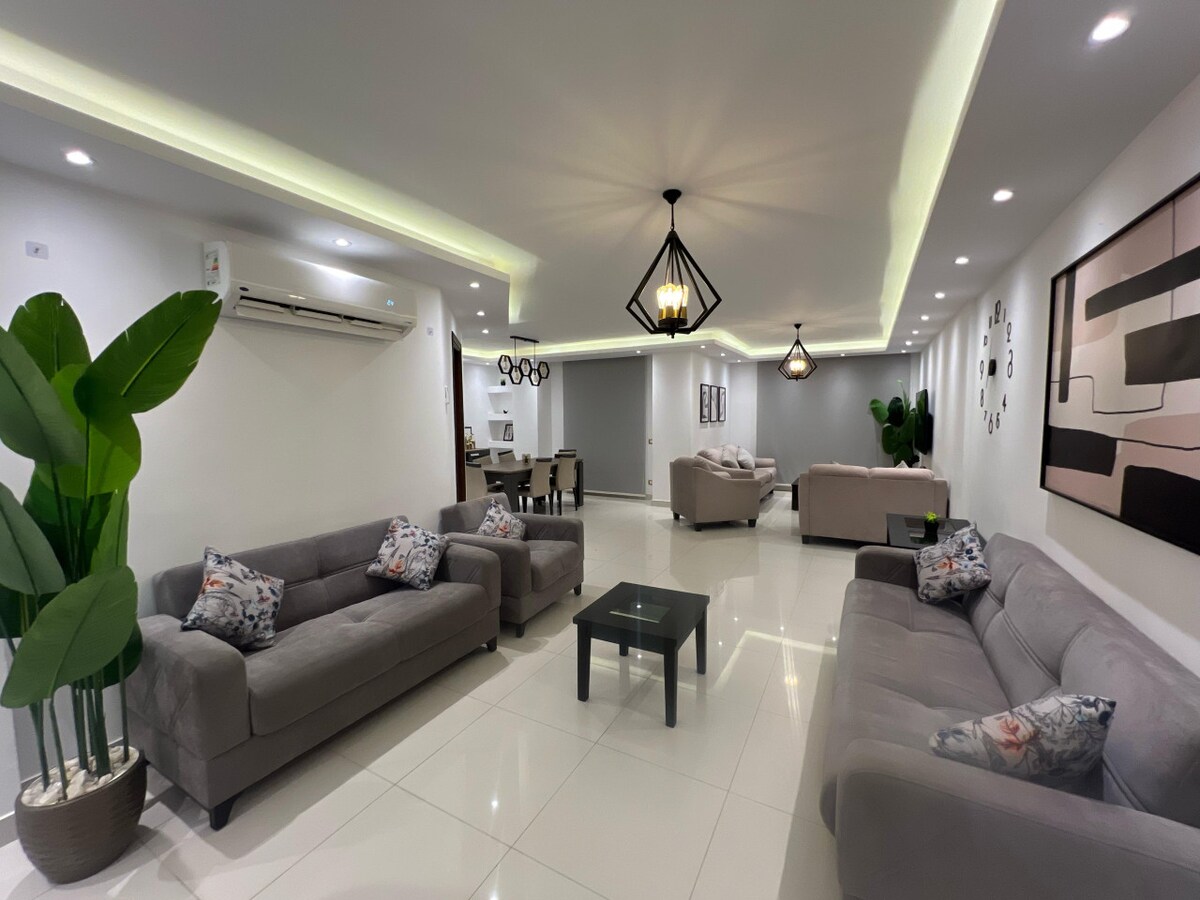 Welcome to lovely Charming Luxury apartment! My Apartment located in Nasr City Enjoy modern elegance 2 Bedroom , complete AC, and comfort. Stylish living area, fully equipped kitchen. You'll love the stylish décor and cozy atmosphere, which makes it the perfect home away from home. *High-speed internet. *10 mins to City Center Almaza & City Stars Mall *15 mins Cairo Festival Mall *15 mins to Airport Book now for a delightful stay!