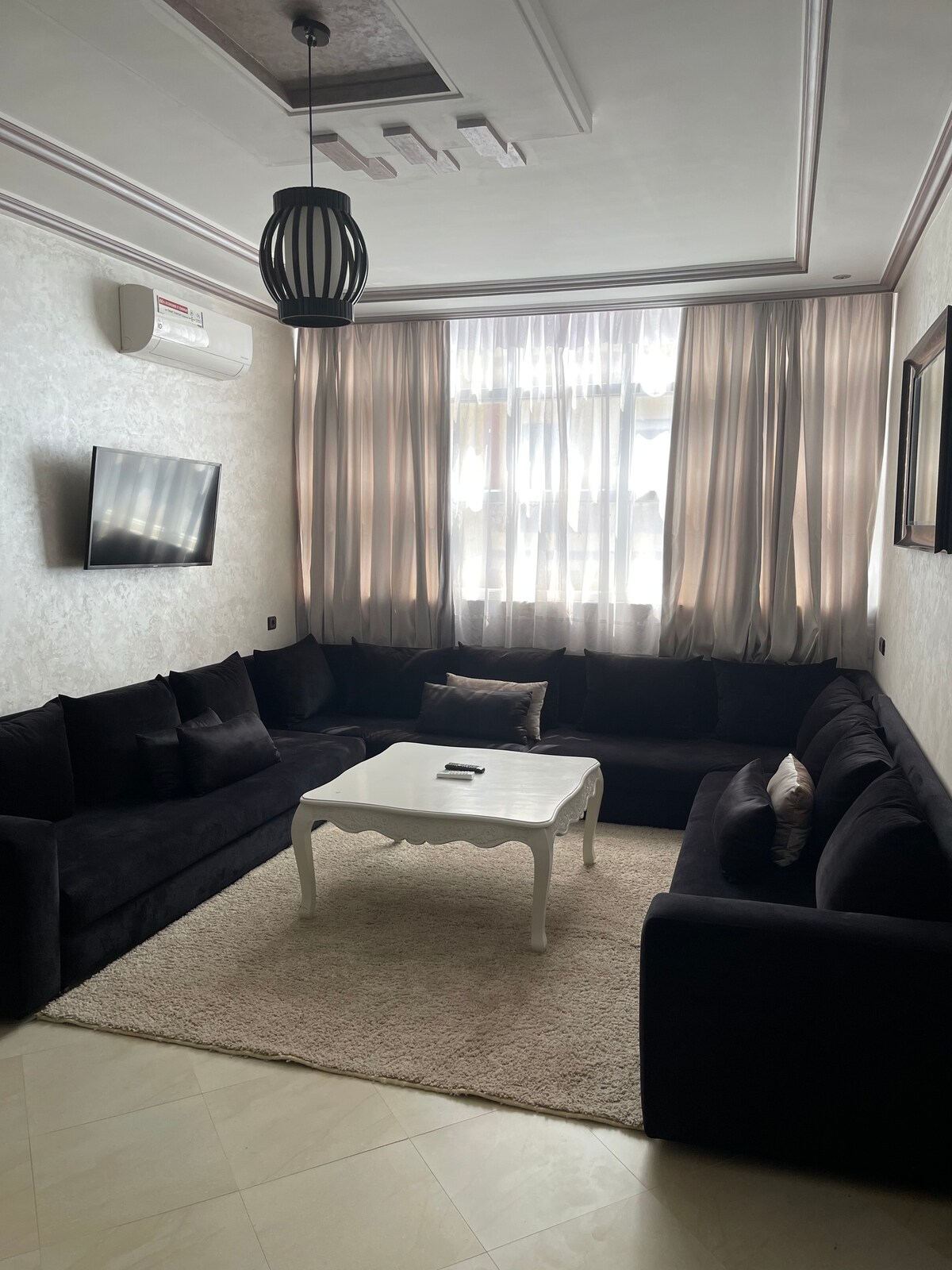 A perfectly equipped home located in a peaceful and safe area, with Mediterranean Sea views. I 15 minutes from downtown, 5 minutes from Marjane and Mirador shopping malls, e 2 minutes de la corniche sabadia A well equipped apartment located in a peaceful and safe neighborhood, with a view of the Mediterranean Sea. It's a 15-minute to the city center, a 5-minute to both Marjane Shopping Center and Mirador Shopping Center, and a quick 2-minute to the Sabadia cornice