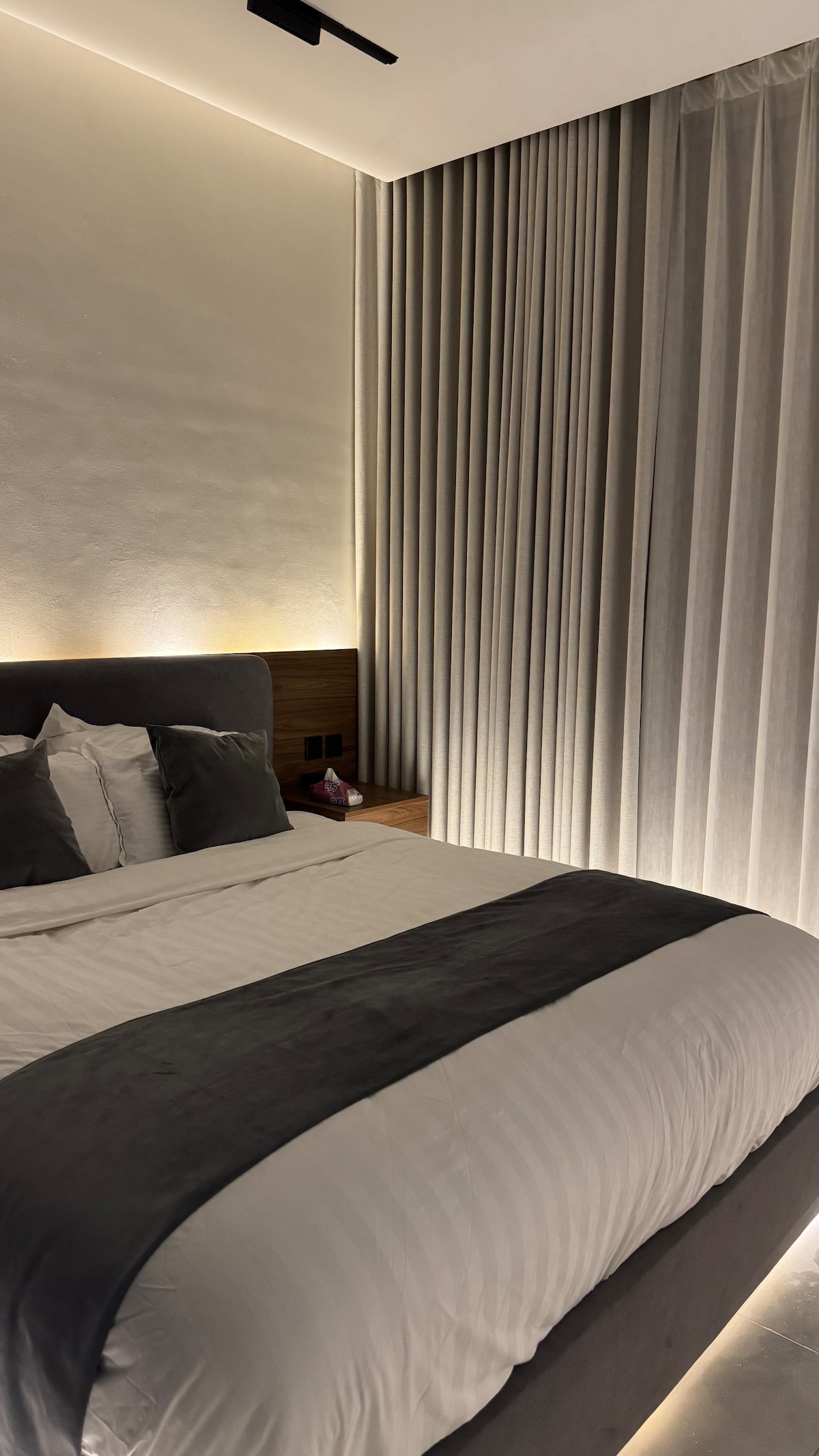 An elegant and comfortable studio carefully designed to give you a quiet and enjoyable stay. It features a modern design and comfortable furniture, with beautiful lighting that gives a sense of warmth and comfort from the moment you enter. The studio has a comfortable bed, a stylish seating area, a smart TV, as well as a private balcony perfect for enjoying coffee or a quiet atmosphere after a long day. The bathroom is clean and modern with essential amenities for guests. The studio is suitable for individuals or couples, and provides complete privacy and comfort, with a high attention to cleanliness and details to ensure a distinctive stay experience.