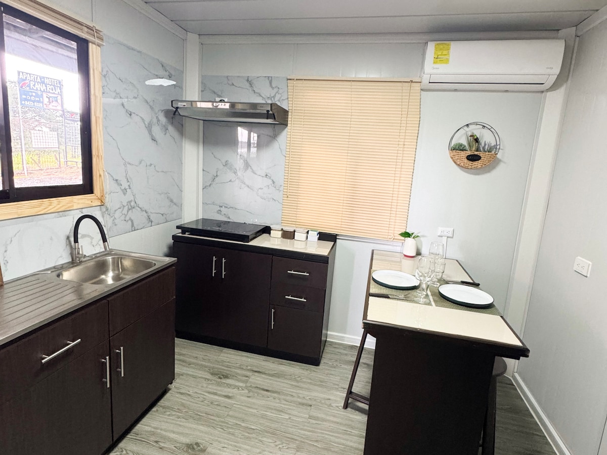 This space is very quiet, enhanced to enjoy nature right from your own terrace. It offers a studio feel with the size of a Casita, offering a Queen bed, a complete bathroom with hot water tank, kitchenette with all the needed cooking utensils, sitting area indoor and outdoor with comfy space, ideal for couples. The forest is your backdrop from this cozy space, it allows you the opportunity to spot tropical bird residents, wildlife, and tropical flowers right from your private terrace.