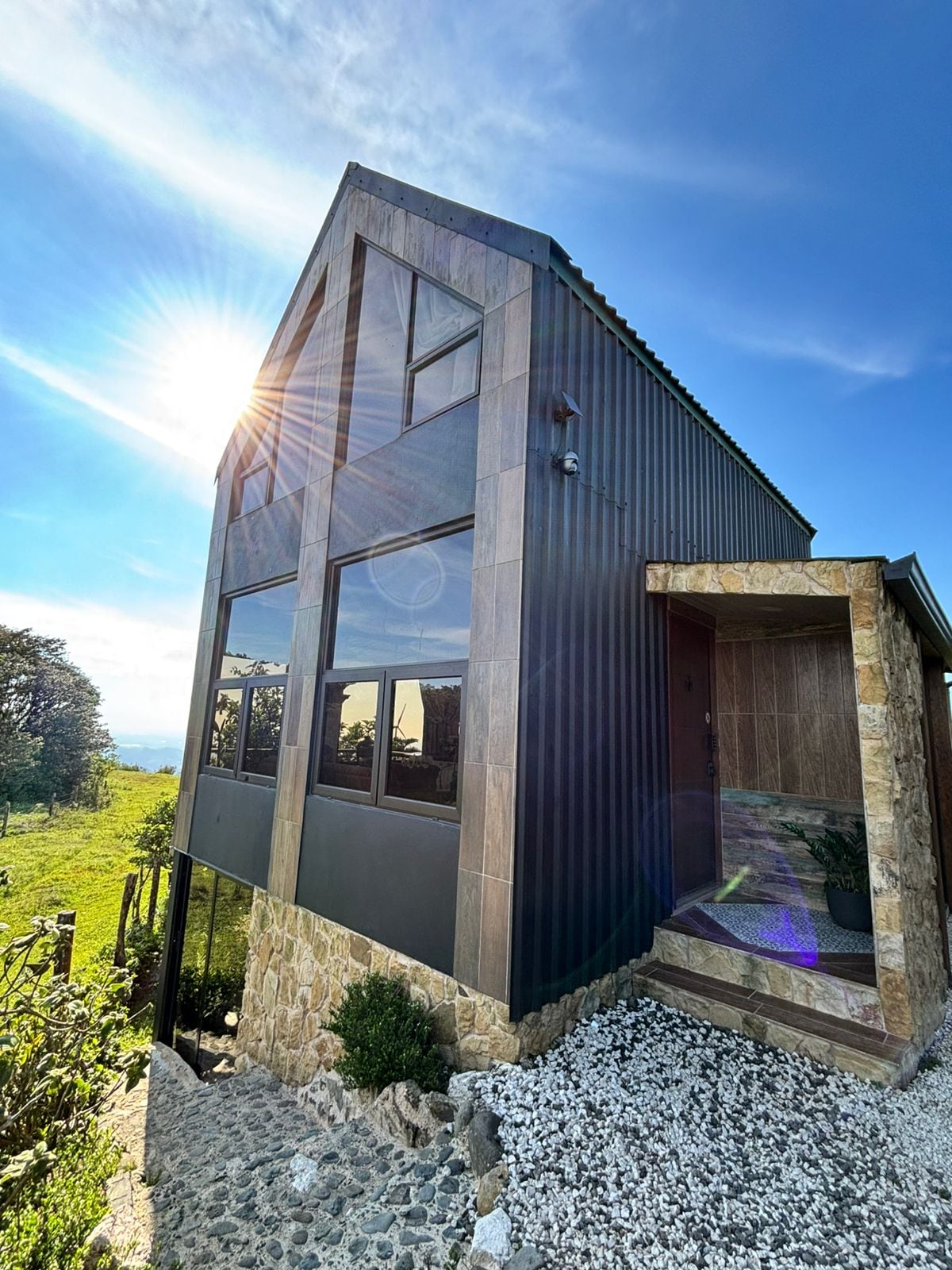 Santuario remoto con total privacidad, vistas impresionantes y el escenario perfecto para una escapada romántica en las colinas de Tilarán. Nuestra casa moderna combina lujo y sostenibilidad, con sauna y energía solar. Disfruta de vistas panorámicas al Lago Arenal y los majestuosos volcanes Tenorio, Miravalles y Rincón de la Vieja, además de senderos de grava ideales para caminar. ¡Déjate cautivar por la magia de nuestras torres eólicas y la majestuosidad del bosque nuboso!