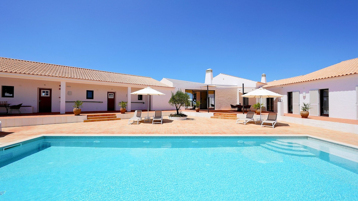 Ochre walls and green gardens make this typical Portuguese mansion a vibrant retreat. Its verdant grounds, tiled rooms, and 7 bedrooms, including 2 in 2 guest houses, are a welcoming place to host a family reunion in the Algarve. While there are plenty of beaches near the villa in the Portimão area, it’s also a short drive to the old town and beaches of Lagos. With a rural setting amid farmland and gardens planted with fruit trees and flowering vines, the villa feels like your own private country estate. Savor the quiet and the sunshine from a lounger by the outdoor swimming pool and linger beneath a palm tree at the alfresco dining table. Your holiday includes daily breakfast, and a housekeeper will make sure you’re comfortable. The living areas at this vacation rental are spread out between a main house and 2 guest houses, but all feature a mix of refined modern pieces and colorful prints. Look for details like mustard-yellow tile around the fireplace, sea-blue cushions on the dining chairs, and brilliant tile on the floor of the fully equipped kitchen. Each guest house also has its own kitchenette. Drive less than 20 kilometers from the villa to 3 different beaches, including the Alvor boardwalk and the top-ranked Praia de Marinha Beach. Head for the nearby port city of Lagos to explore cobblestone streets running beneath 16th-century walls and pause at one of its lively restaurants. Copyright © Luxury Retreats. All rights reserved. BEDROOM & BATHROOM • Bedroom 1 - Primary: King size bed, Ensuite bathroom with stand-alone rain shower and bathtub, Air conditioning, Safe • Bedroom 2: Queen size bed, Ensuite bathroom with stand-alone rain shower, Air conditioning, Safe • Bedroom 3: 2 Twins size beds (can be converted to a king), Ensuite bathroom, shower/bathtub combo, Air conditioning, Safe • Bedroom 4: 2 Twin size beds (can be converted to a king), Ensuite bathroom with stand-alone rain shower, Air conditioning, Safe • Bedroom 5: Queen size bed, Ensuite bathroom with stand-alone rain shower, Air conditioning Guest house • Bedroom 6: 2 Twin size beds (can be converted to a king), Ensuite bathroom with stand-alone rain shower, Kitchenette, Lounge area Guest house 2 • Bedroom 7: King Twin size beds, Ensuite bathroom with stand-alone shower, Kitchenette, Lounge area FEATURES & AMENITIES Extra cost (advance notice may be required): • Activities and excursions • More under “Add-on services” below