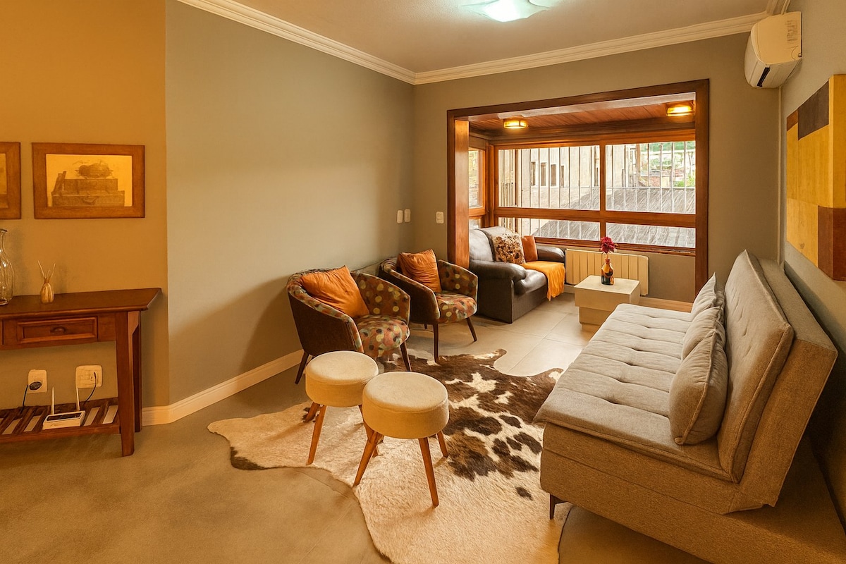 Enjoy your stay in comfort and sophistication in this cozy apartment two blocks from Rua Coberta. Central yet secluded, it offers the tranquility of a view of the native forest and the reflecting pools. Excellent for two couples or a family, accommodates up to 5 people. -> CLICK below on "Show more" to see other details.