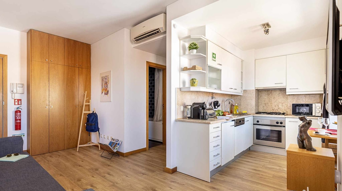 Boutique studio apartment with very comfortable king size bed, soft white linen and luxury pillows. Air conditioned, fully equipped kitchen, large marble bathroom with top quality towels as well as washer & dryer. Vibrant area with many restaurants, shops and cafes. Directly on the historical E28 Tram 🚋 line, and walking distance to Chiado, Bairro Alto & Cais do Sodré. Building has elevator and transportation is easy 📶Free Wi-Fi 📺 Smart TV ☕ Complementary Nespresso coffee and tea