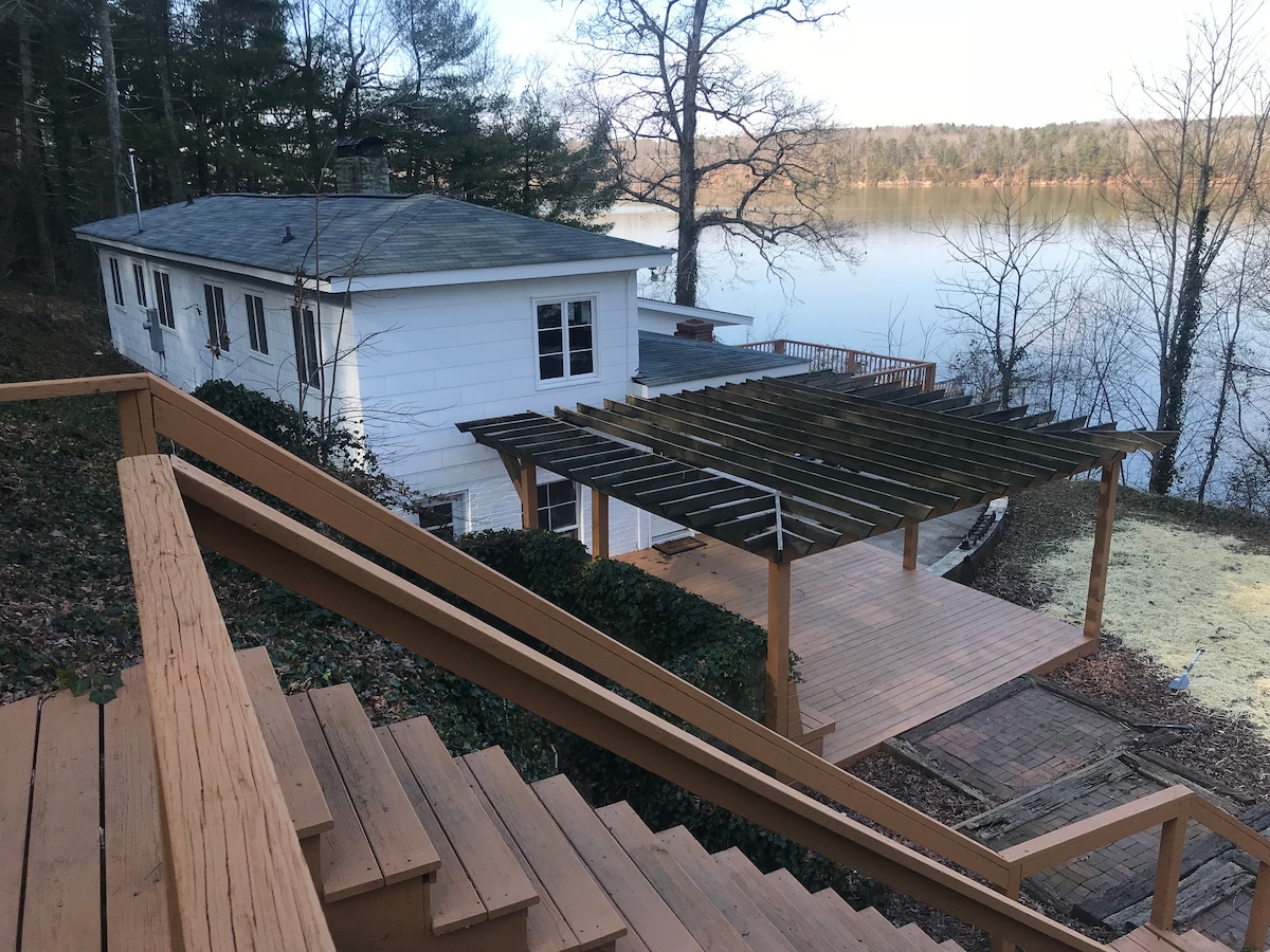 A beautiful private lake cottage on Lake Hickory in wooded area (rhododendron and exotic plants). Cottage has approx. 200 ft. of waterfront. Boat dock with seating and for recreation. House is contemporary and newly remodeled with 2 BR with 1 king bed and guest with queen bed , 2 Baths, Kitchen has natural stone counter tops, LR leather furniture .Baths have natural stone. There are two porches for gorgeous lake views. Stereo surround inside and outside the house. House 1100 sf.