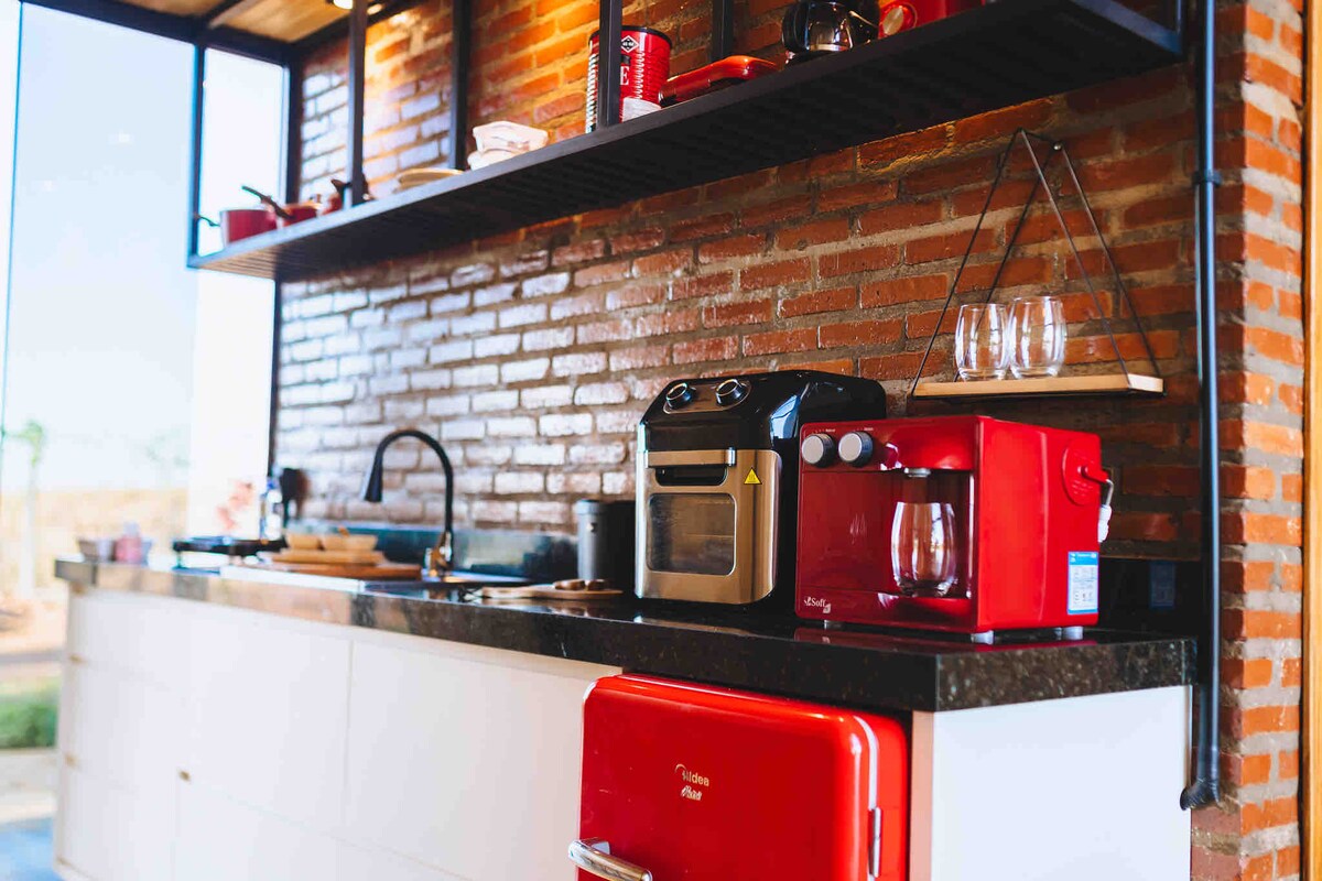 Relax in this spacious and fully air-conditioned space. Located 5.5 km from Pirenópolis, the chalet has a super spacious bedroom with a king-size bed, great for those who like space and comfort! We have a bathtub and a heated pool perfect for cold nights! Our kitchen is complete, with microwave, blender, air fryer, basic kitchen utensils! We provide bed linens and towels! We have Wi-Fi, air conditioning and a coffee maker!
