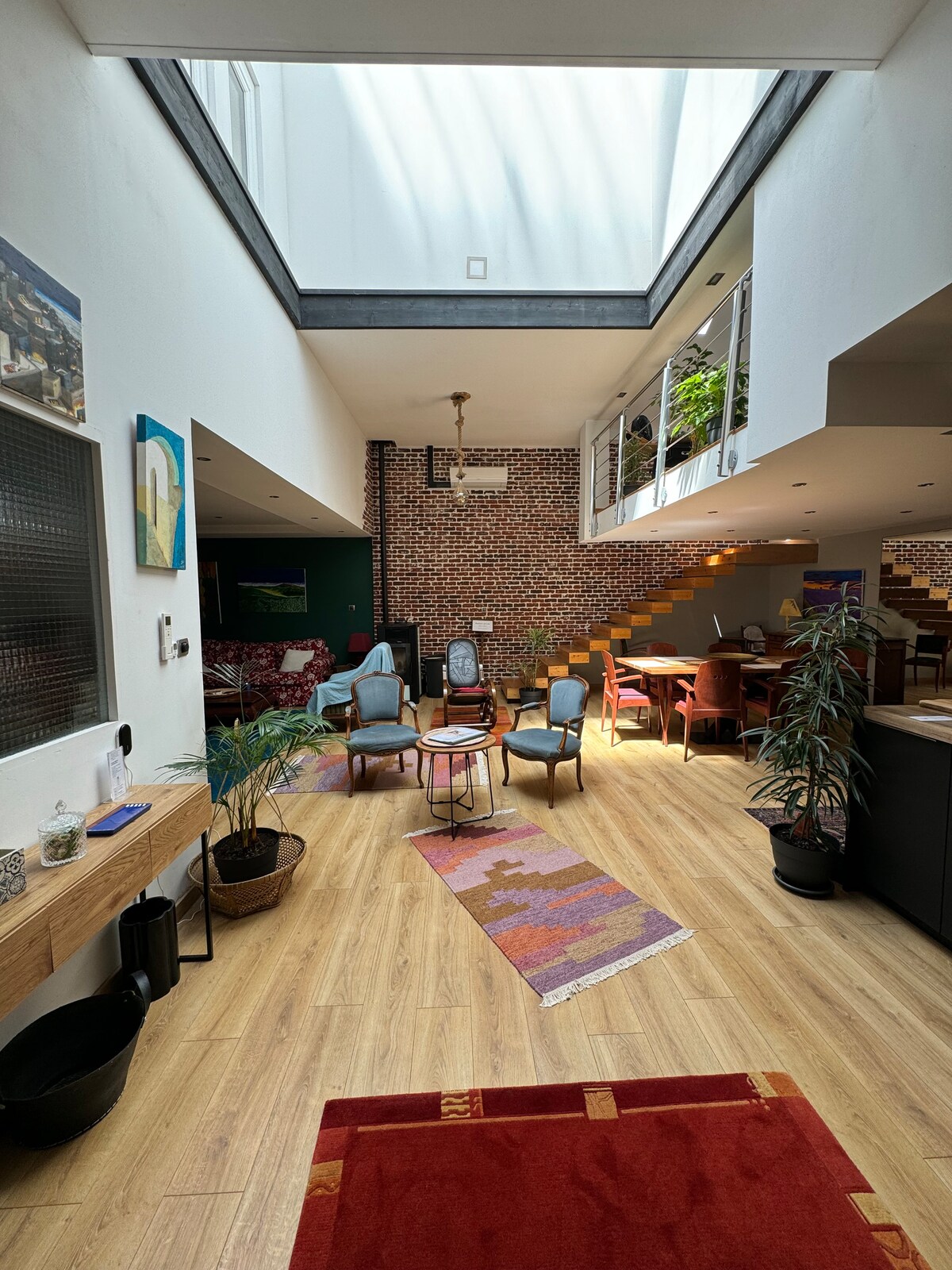 Welcome to our unusual loft in Vichy, ideal for seasonal stays. Very spacious (220 m2) and bright, close to parks and shops. Loft with fully-equipped kitchen, relaxing lounge, home office, one air-conditioned bedroom (Queensize bed) and three quiet sleeping areas, two spacious bathrooms with 4 showers, whirlpool bath and separate sauna. Perfect for couples, families or groups (1 to 8 people). No noisy events to preserve the tranquillity of the neighbourhood.