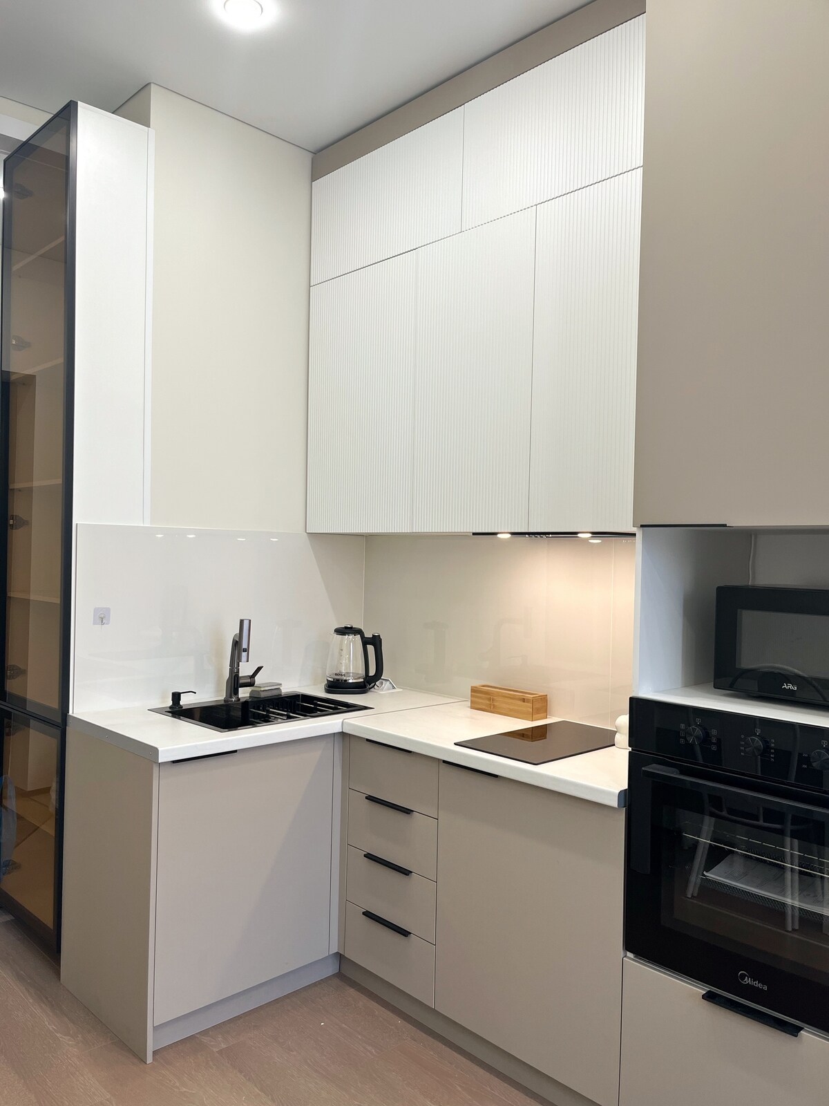 EN Modern apartment in Meridian: Wi-Fi, kitchen, washing machine, A/C, smart TV, balcony. Self check-in. Across from Mega Park Mall RU Modern apartment in Meridian: Wi-Fi, kitchen, washer, A/C, smart TV, balcony. Self check-in. Opposite MegaPark Mall.