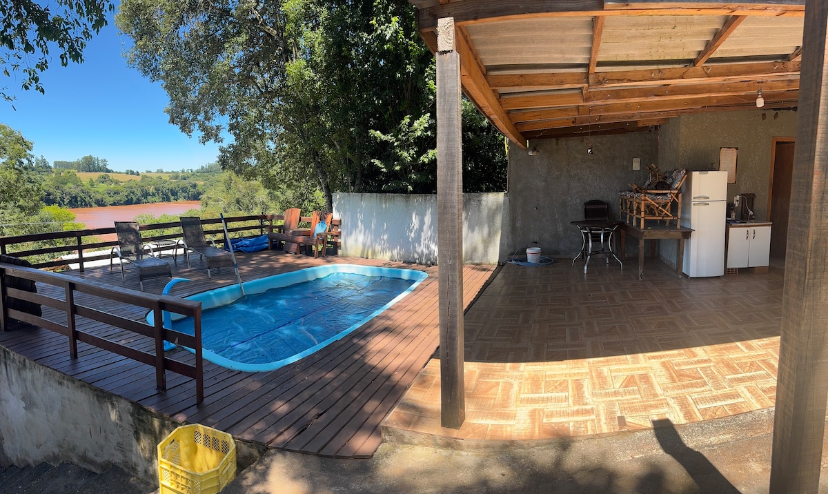 Desfrute do nosso refúgio com uma vista espetacular para o Rio Uruguai. Nosso chalé oferece dois quartos confortáveis, dois banheiros amplos, uma cozinha totalmente equipada e uma sala planejada. Na área externa, você poderá relaxar junto à lareira charmosa, aproveitar a área gourmet com churrasqueira, forno de pizza e fogão a lenha, além de uma hidromassagem para momentos de puro relaxamento. Com internet via satélite da Starlink para sua conveniência. Venha viver experiências inesquecíveis.