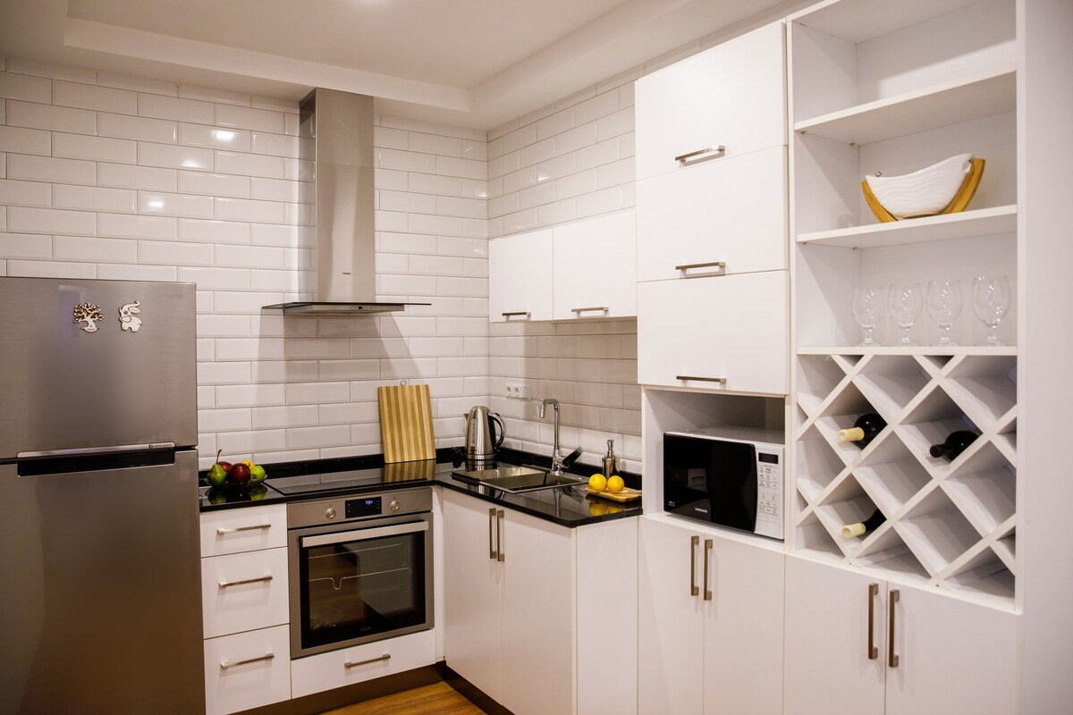 This beautiful contemporary studio flat is just 2 minutes walk from the city's cleanest beach, 5 minutes walk from city central square and all touristic areas, cafes and restaurants. King sized bed with all glass window for nocturnal sky and city gazing. The kitchen is fully equipped with everything you will need. It's wonderfully quiet and secured with high security systems. There is a bike hire station just 20 seconds away, perfect for a cycle along Batumi Boulevard.
