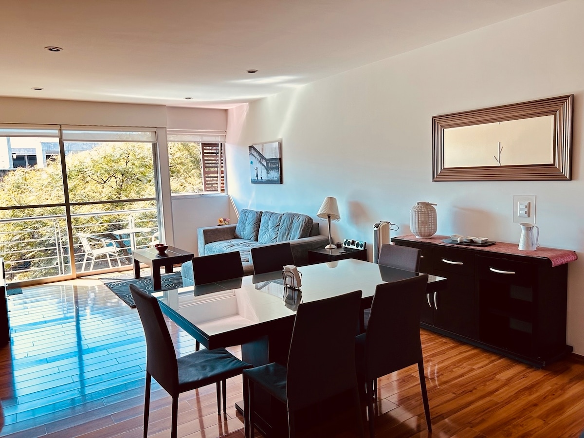 Just renovated apartment right across Viveros Park - Coyoacán. Located on ground floor and private car-parking space. Open kitchen with a large dining/working area. King size bed in a dark secluded space. Private bathroom with wardorbe. 60'' TV with sofa bed. Great location if want to explore Coyoacán and San Ángel areas. Notice that the apartment does not have any terrace nor open space. There are two large glass ceilings each with an operable skylight for ventilation.