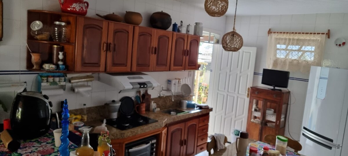 A quiet and pleasant 600m2 accommodation. The house has a large space, with a very green garden, two spacious and airy bedrooms (one of them being a suite), a bathroom, kitchen, wifi internet available throughout the environment.