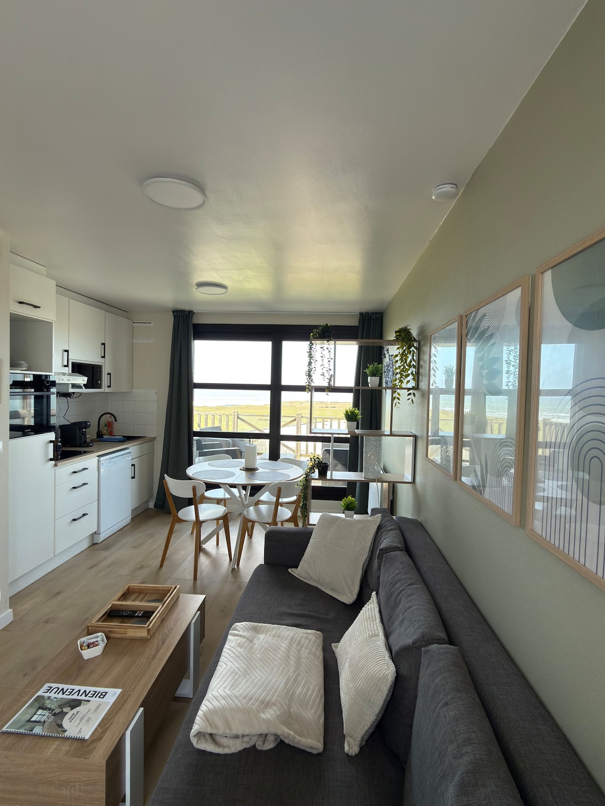 Charming fully renovated duplex with direct sea views. Breathtaking 180° view stretching from Wimereux to Audresselles. I Nestled in the heart of a unique complex, treat yourself to a break of calm, nature and sea air. Our little cocoon offers all the comforts necessary for a perfect stay for 2 or 4 people With a fully equipped kitchen, a separate bedroom, a bathroom with bathtub, you will only have to enjoy the sweetness of Wimereusian life.