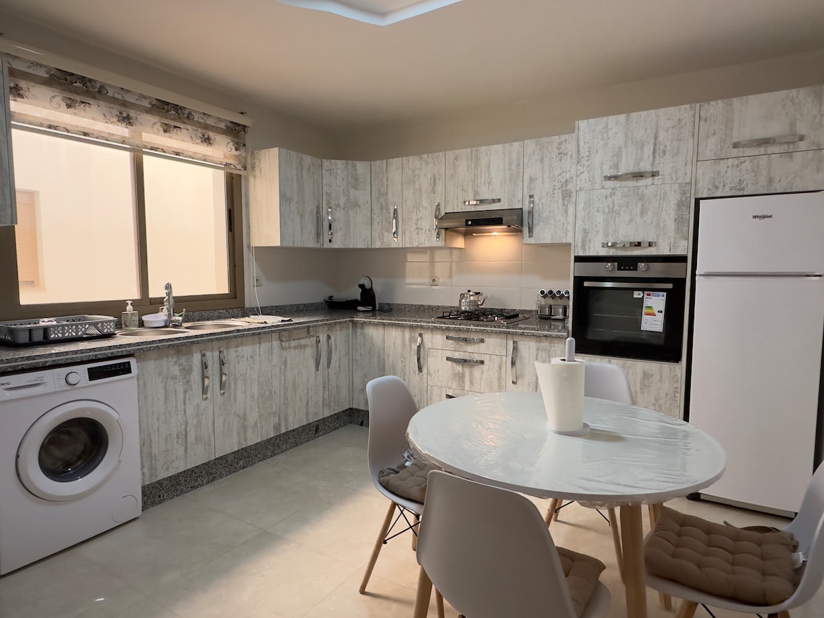 Welcome to your family home in Nador! This spacious apartment has been designed with comfort, space, and privacy in mind. Ideal for families or groups of up to 6 people, it offers a warm, modern, and fully equipped environment to help you enjoy your stay to the fullest. Prime Location: • Just a 7-minute drive from the beautiful Marchica Lagoon (easily accessible by taxi) • Only a 10-minute walk from the traditional Oulad Mimoun souk • Just a 5-minute walk from Clinique Al Wahda
