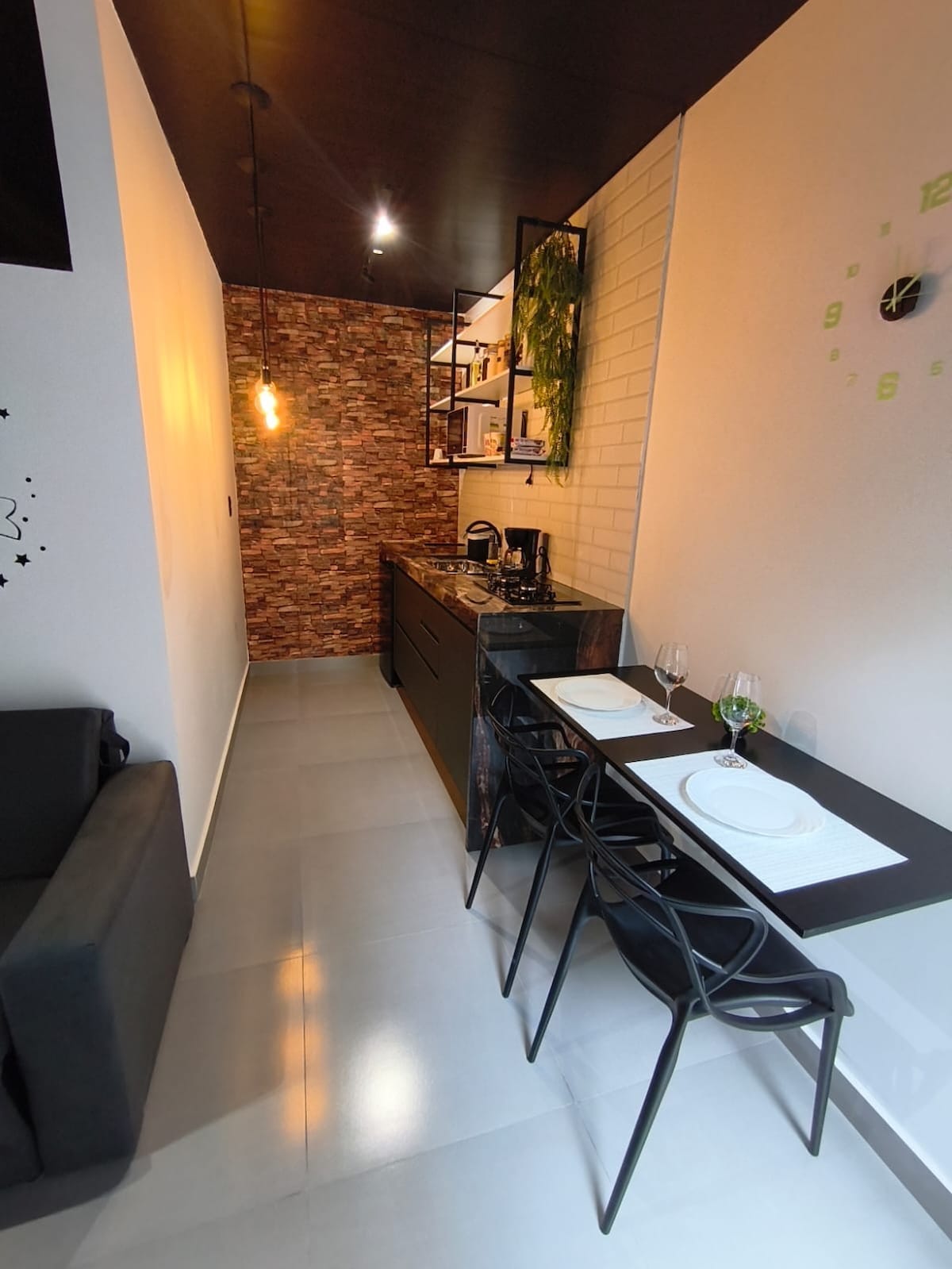 Este nosso novo espaço proporciona o estilo antigo com a modernidade atual. Trazendo elegância e conforto para os seus dias de descanço. Usamos a criatividade pra lhe proporcionar uma experiência perfeita. Aproveite sua estadia e sinta-se em casa! O espaço conta com TV smart com netflix gratuita, ferro de passar, liquidificador, sanduicheira, micro-ondas, 2 ventiladores de teto, secador de cabelo. CONTÉM AR CONDICIONADO Esse espaço NÃO contém vaga na garagem.