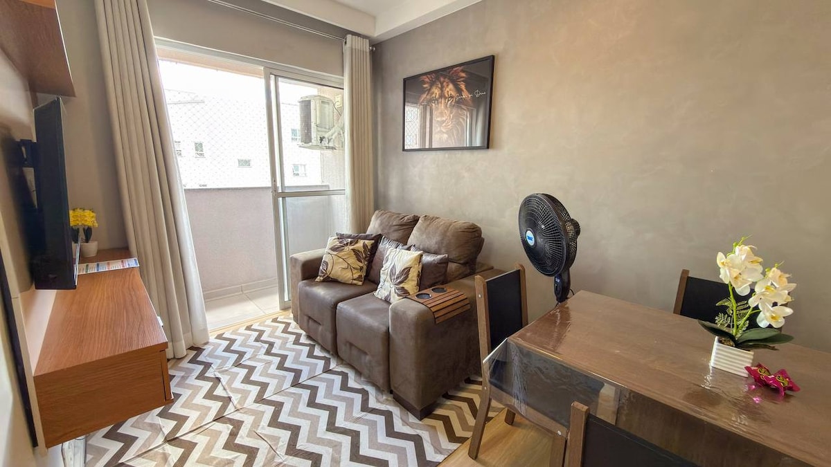 Enjoy our apartment on the 2nd floor, near the entrance. With 2 bedrooms (1 double bed and 1 single bed), it is ideal for families or groups. We offer a parking space and a privileged location, a few steps from Unisal College - Maria Auxiliador Campus. In addition, you will find supermarkets, bakeries, pharmacies and laundries nearby. Come relax and enjoy the practicality of this cozy space! Book your stay now!