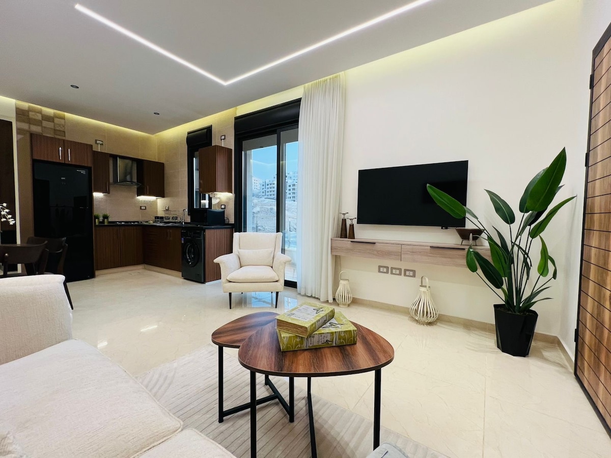 Enjoy a stylish experience at this centrally located place, fully furnished modern apartment in the heart of Amman, all services are footsteps away, New Secured clean building, underground parking, enjoy hotels experience in a private apartment.