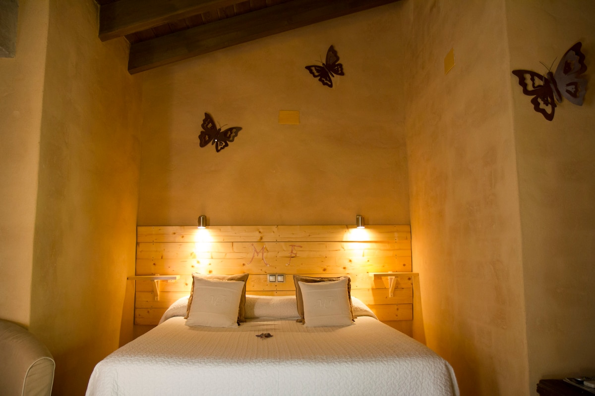 The Standard suite has an entrance with double doors to ensure a good acoustic isolation. It has a vaulted ceiling and a king size bed (180x200) framed in an original bricked arch. It has as well a balcony into Silos street. Its maximum occupancy is 2 people. Additionally it has a desk table and a fully equipped bathroom. It has free wifi, Nespresso coffee machine and air conditioning. It is ideal for families or couples.