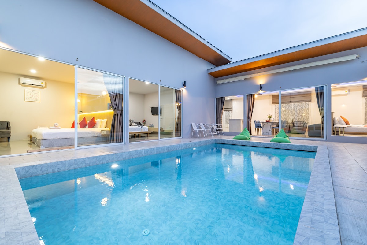 Junior Suite with private pool near Bangtoa Beach. Tiny luxury private pool suite resort with only 6 suites. Your suite is 64 sqm. large and decorated in luxury/loft/modern style with full amenities. (We randomly choose the room style for you.) Everyday cleaning without charge. Taxi service, excursion, vehicle rent, gym, free street parking, and night security guard. Only 2 mins ride to Bangtao Beach.