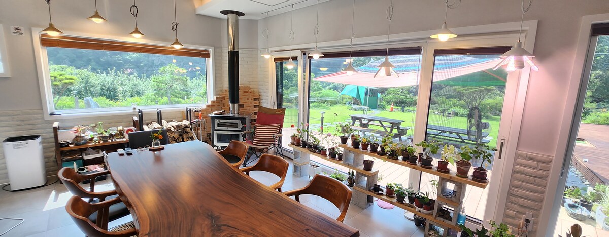 Guest booking for๐ป 2 nights Barbecue and antique large brazier free. Barbecue grill (including charcoal) and Large antique furnace (including firewood)๐ป However, discount promotion If you are a reservation guest Barbecue and fireplace free services are excluded from application. The standard number of people is 4. The maximum number of people is 6. A large yard๐ณ๐ณ๐ณ of 660m2. The small room with a double bed in the master bedroom is made of ondol. It is prepared. A clean and luxurious living room is the main It's an interior point. In the backyard, lettuce and pepper pumpkin We are growing cherry tomatoes and others Taste it and have a farming experience with your kids. ๐ฅฆ๐ ๐ถ๏ธ๐ฅ (Except winter) It is convenient to purchase groceries in advance at Hanaro Mart and convenience stores before check-in. ๐งน Our house is laundry and indoor disinfection thoroughly dry and wear out your hands and feet Please use it with peace of mind about cleanliness. ๐งฝ What you want to inquire about If you have any questions, anytime If you contact us by text or phone We'll answer as best as we can. Gongilgong Chiligongsa Samyodpalchil